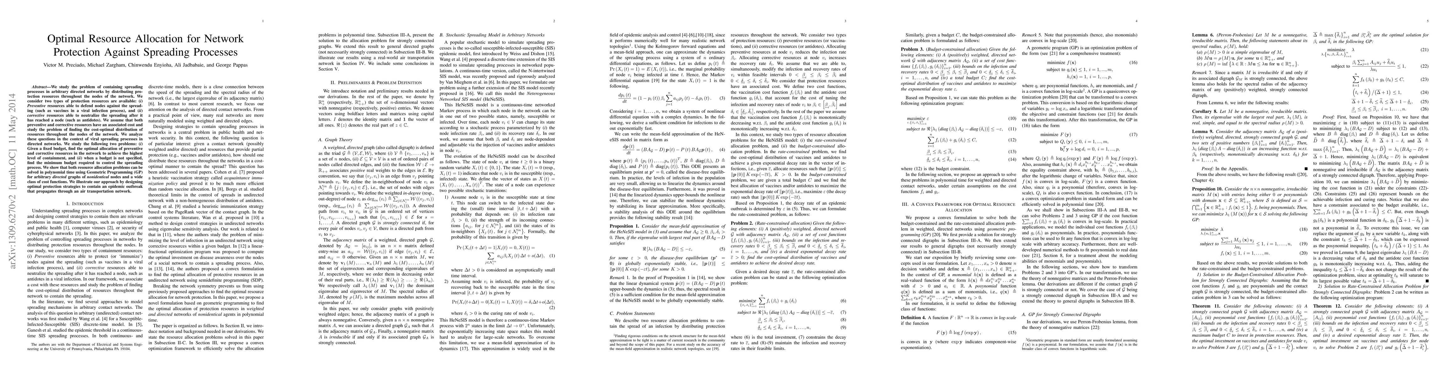 We study the problem of containing spreading processes in arbitrary directed networks by distributing protection resources throughout the nodes of the network. We consider two types of protection resources are available: (i) Preventive resources able to defend nodes against the spreading (such as vaccines in a viral infection process), and (ii) corrective resources able to neutralize the spreading after it has reached a node (such as antidotes). We assume that both preventive and corrective resources have an associated cost and study the problem of finding the cost-optimal distribution of resources throughout the nodes of the network. We analyze these questions in the context of viral spreading processes in directed networks. We study the following two problems: (i) Given a fixed budget, find the optimal allocation of preventive and corrective resources in the network to achieve the highest level of containment, and (ii) when a budget is not specified, find the minimum budget required to control the spreading process. We show that both resource allocation problems can be solved in polynomial time using Geometric Programming (GP) for arbitrary directed graphs of nonidentical nodes and a wide class of cost functions. Furthermore, our approach allows to optimize simultaneously over both preventive and corrective resources, even in the case of cost functions being node-dependent. We illustrate our approach by designing optimal protection strategies to contain an epidemic outbreak that propagates through an air transportation network.