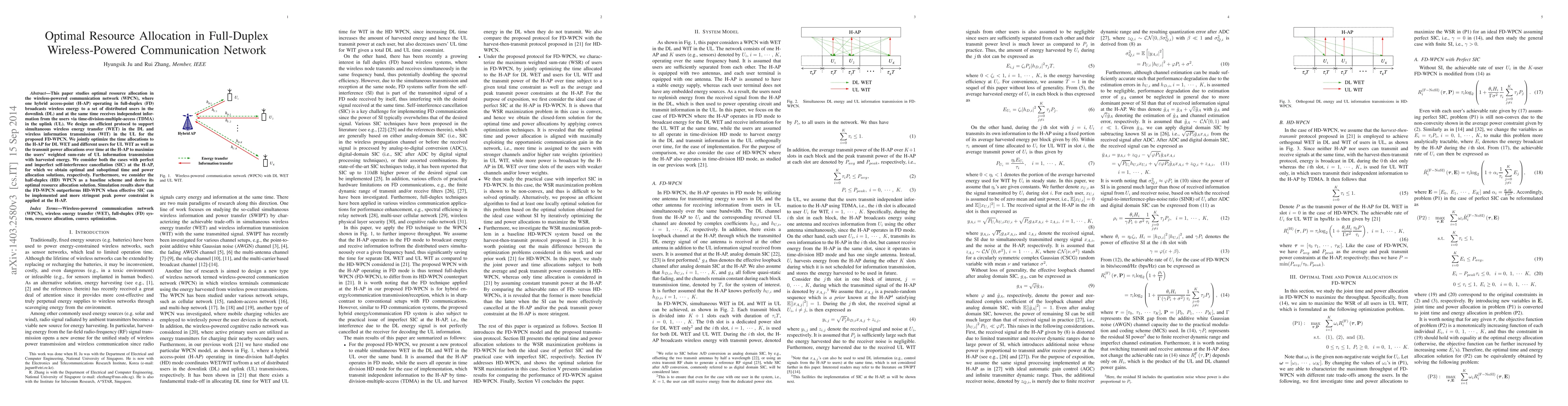 This paper proposes an optimal resource allocation strategy for a full-duplex wireless-powered communication network, optimizing time and power allocations to maximize users' weighted sum-rate. It compares full-duplex and half-duplex modes, showing superior performance of the former under effective self-interference cancellation.