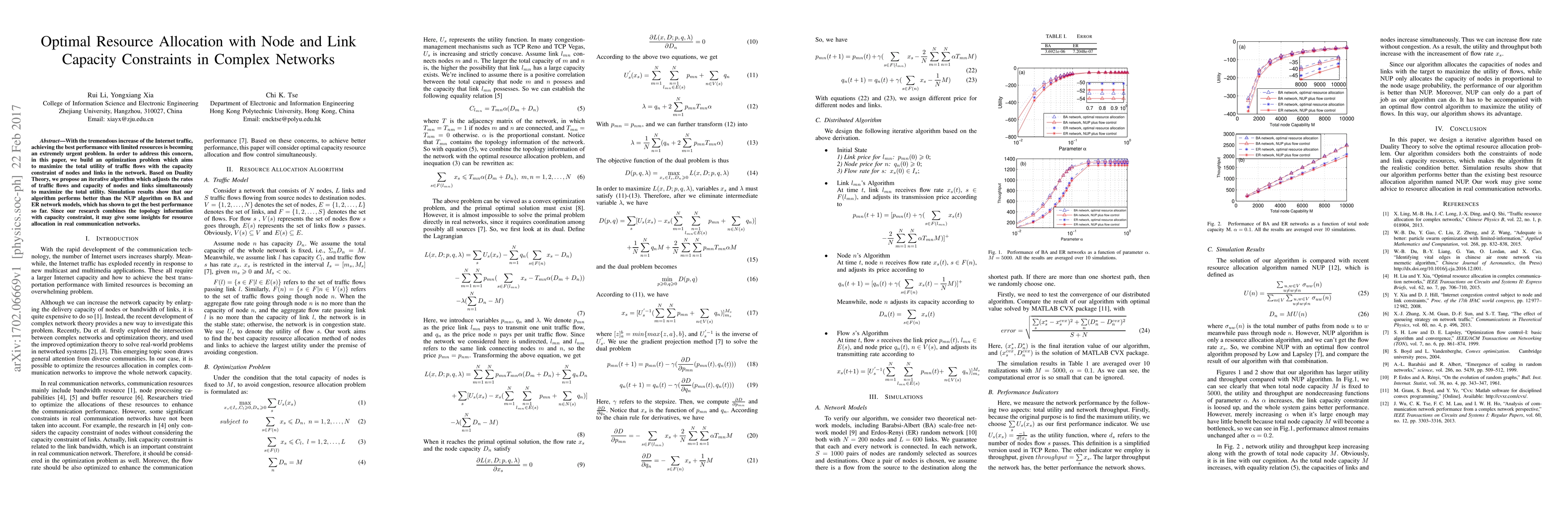 With the tremendous increase of the Internet traffic, achieving the best performance with limited resources is becoming an extremely urgent problem. In order to address this concern, in this paper, we build an optimization problem which aims to maximize the total utility of traffic flows with the capacity constraint of nodes and links in the network. Based on Duality Theory, we propose an iterative algorithm which adjusts the rates of traffic flows and capacity of nodes and links simultaneously to maximize the total utility. Simulation results show that our algorithm performs better than the NUP algorithm on BA and ER network models, which has shown to get the best performance so far. Since our research combines the topology information with capacity constraint, it may give some insights for resource allocation in real communication networks.