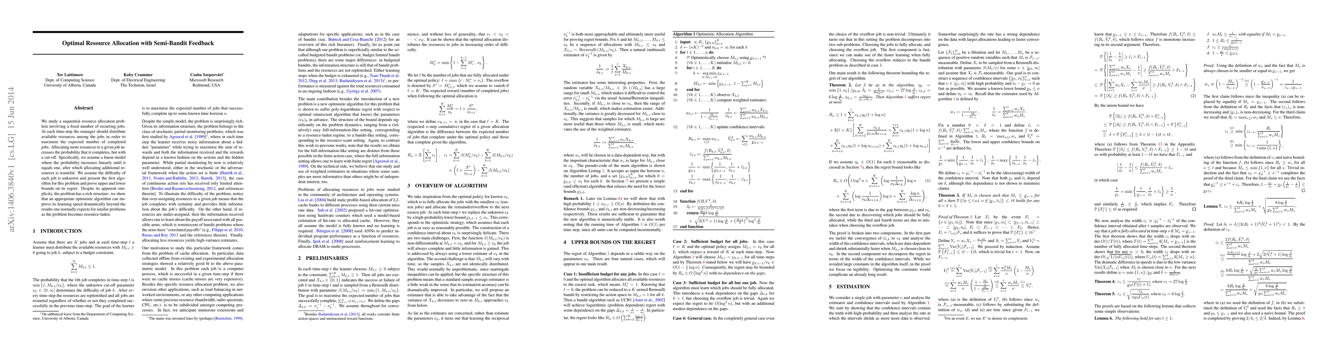 Researchers developed an algorithm for optimal resource allocation in a sequential job system with semi-bandit feedback, achieving faster learning speeds than expected, and proved upper and lower bounds on its regret.