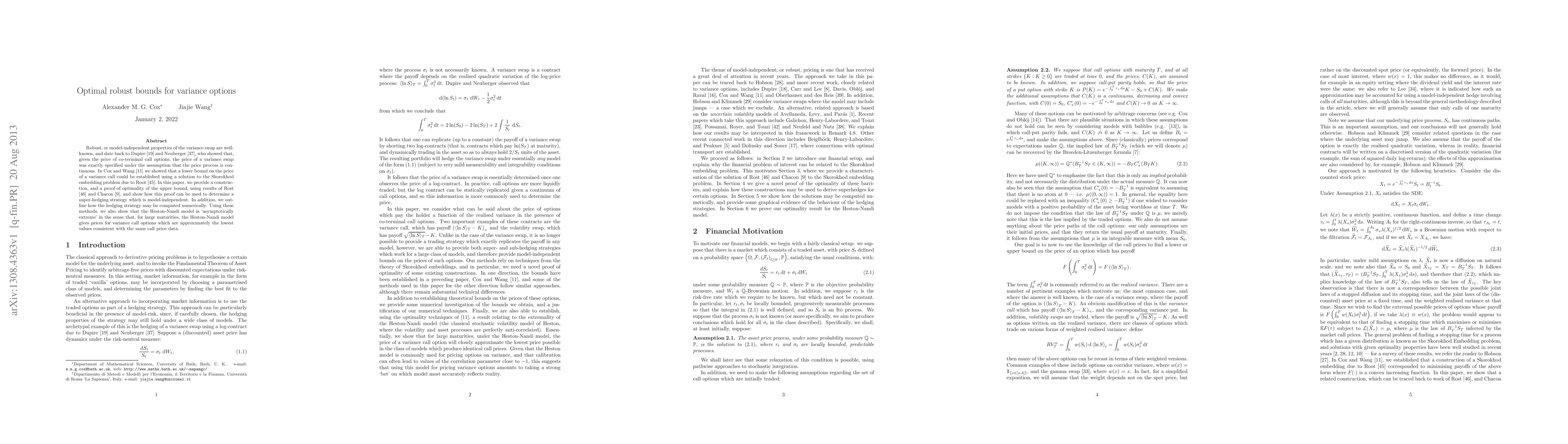 The paper's technical contribution lies in the construction and proof of optimal robust bounds for variance options using viscosity solutions, along with a model-independent super-hedging strategy.