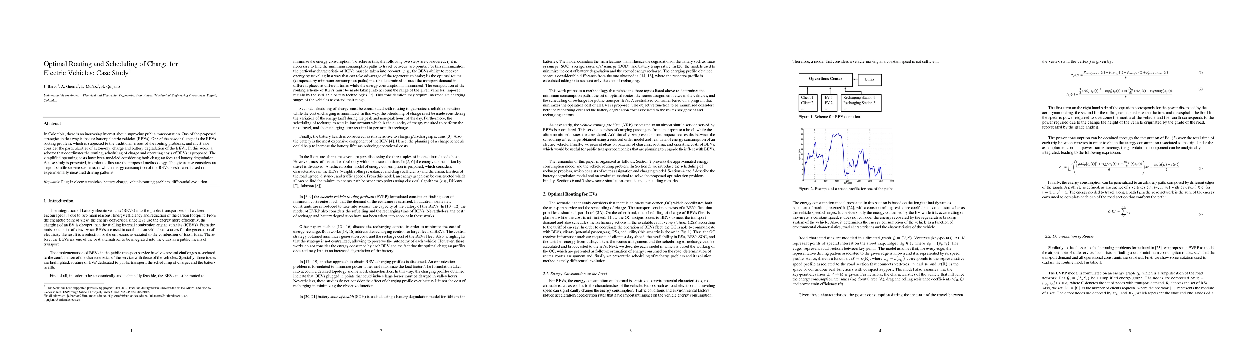 In Colombia, there is an increasing interest about improving public transportation. One of the proposed strategies in that way is the use battery electric vehicles (BEVs). One of the new challenges is the BEVs routing problem, which is subjected to the traditional issues of the routing problems, and must also consider the particularities of autonomy, charge and battery degradation of the BEVs. In this work, a scheme that coordinates the routing, scheduling of charge and operating costs of BEVs is proposed. The simplified operating costs have been modeled considering both charging fees and battery degradation. A case study is presented, in order to illustrate the proposed methodology. The given case considers an airport shuttle service scenario, in which energy consumption of the BEVs is estimated based on experimentally measured driving patterns.