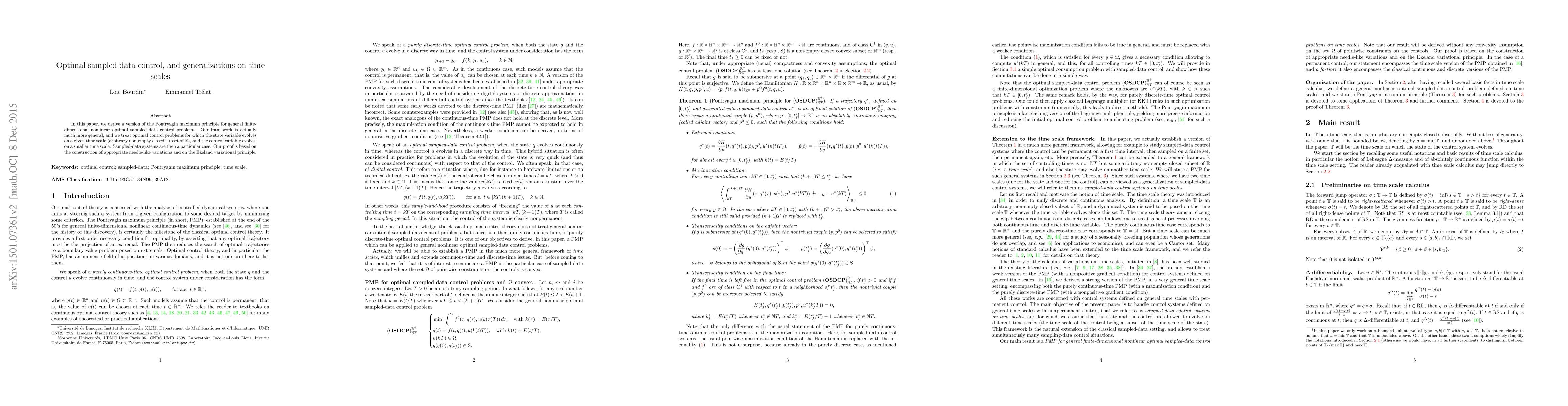 In this paper, we derive a version of the Pontryagin maximum principle for general finite-dimensional nonlinear optimal sampled-data control problems. Our framework is actually much more general, and we treat optimal control problems for which the state variable evolves on a given time scale (arbitrary non-empty closed subset of R), and the control variable evolves on a smaller time scale. Sampled-data systems are then a particular case. Our proof is based on the construction of appropriate needle-like variations and on the Ekeland variational principle.