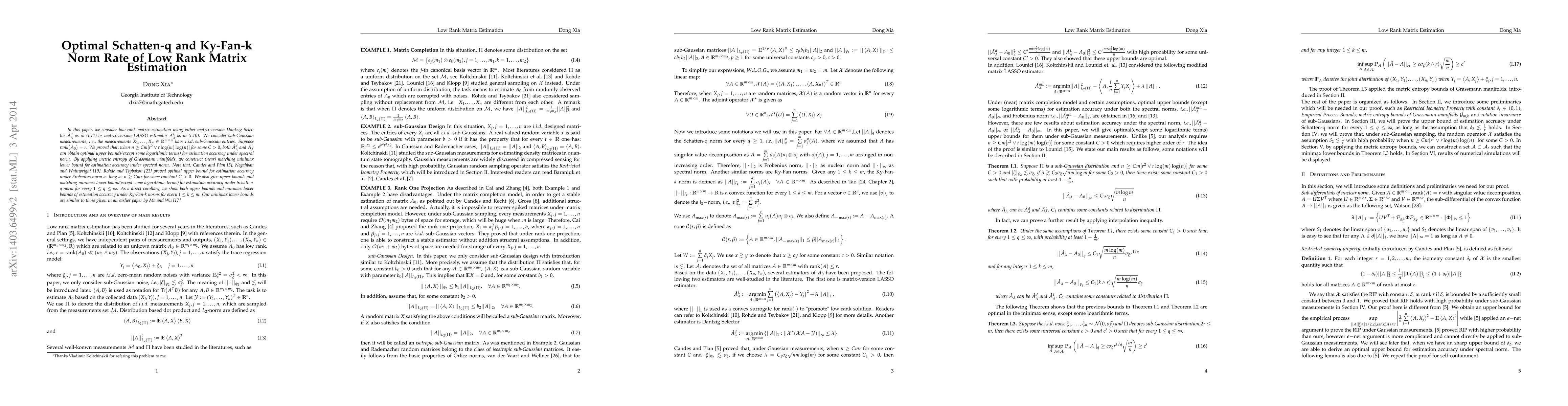 This paper investigates low rank matrix estimation using matrix-version Dantzig Selector and LASSO estimators under sub-Gaussian measurements. It proves optimal upper bounds for both estimators under spectral norm and constructs matching minimax lower bounds, demonstrating similar results for Schatten-q and Ky-Fan-k norms.