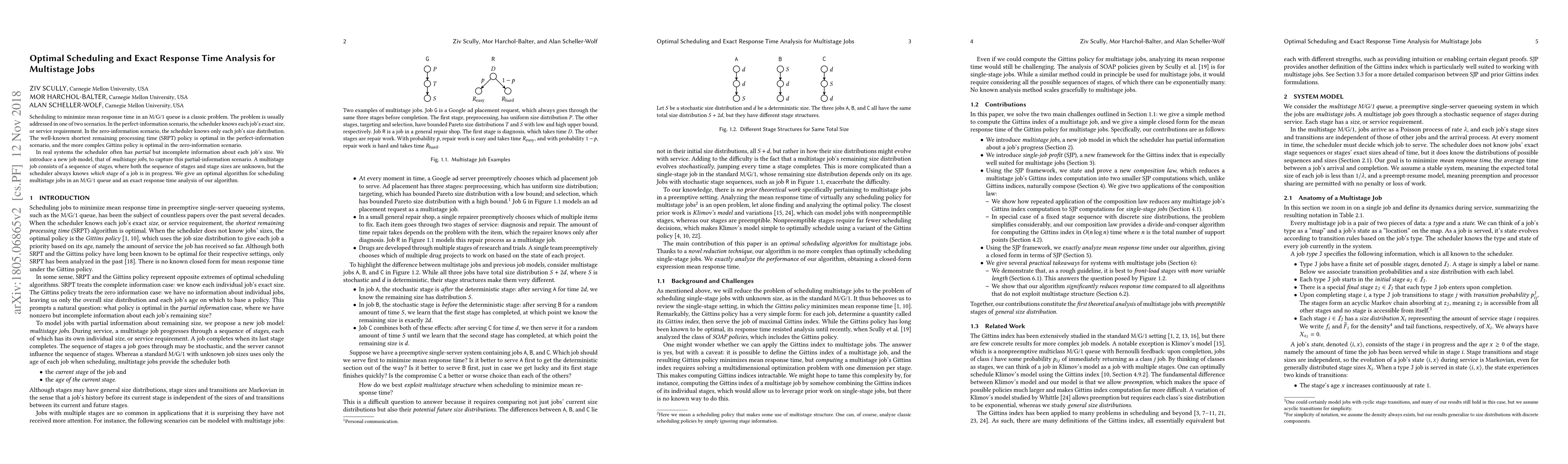 Scheduling to minimize mean response time in an M/G/1 queue is a classic problem. The problem is usually addressed in one of two scenarios. In the perfect-information scenario, the scheduler knows each job's exact size, or service requirement. In the zero-information scenario, the scheduler knows only each job's size distribution. The well-known shortest remaining processing time (SRPT) policy is optimal in the perfect-information scenario, and the more complex Gittins policy is optimal in the zero-information scenario. In real systems the scheduler often has partial but incomplete information about each job's size. We introduce a new job model, that of multistage jobs, to capture this partial-information scenario. A multistage job consists of a sequence of stages, where both the sequence of stages and stage sizes are unknown, but the scheduler always knows which stage of a job is in progress. We give an optimal algorithm for scheduling multistage jobs in an M/G/1 queue and an exact response time analysis of our algorithm.