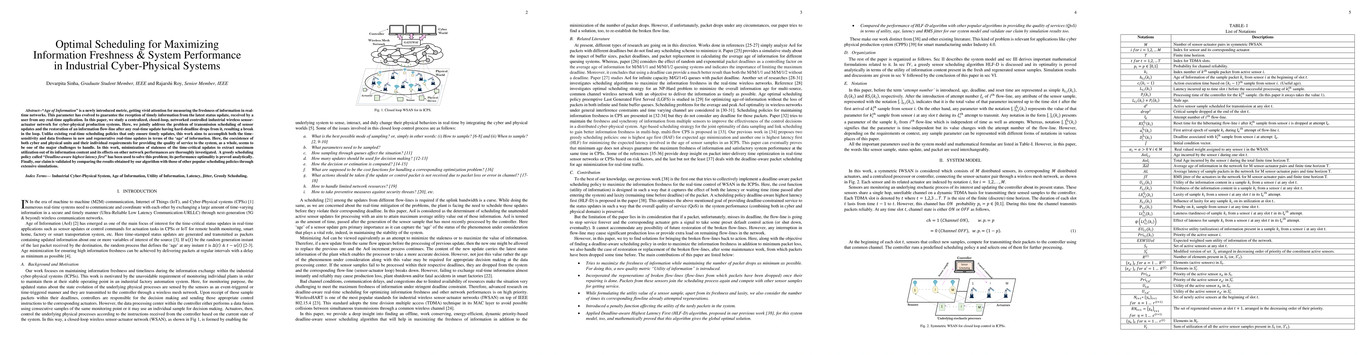 Age of Information is a newly introduced metric, getting vivid attention for measuring the freshness of information in real-time networks. This parameter has evolved to guarantee the reception of timely information from the latest status update, received by a user from any real-time application. In this paper, we study a centralized, closed-loop, networked controlled industrial wireless sensor-actuator network for cyber-physical production systems. Here, we jointly address the problem of transmission scheduling of sensor updates and the restoration of an information flow-line after any real-time update having hard-deadline drops from it, resulting a break in the loop. Unlike existing real-time scheduling policies that only ensure timely updates, this work aims to accomplish both the time-sensitivity and data freshness in new and regenerative real-time updates in terms of the age of information. Here, the coexistence of both cyber and physical units and their individual requirements for providing the quality of service to the system, as a whole, seems to be one of the major challenges to handle. In this work, minimization of staleness of the time-critical updates to extract maximum utilization out of its information content and its effects on other network performances are thoroughly investigated. A greedy scheduling policy called Deadline-aware highest latency first has been used to solve this problem; its performance optimality is proved analytically. Finally, our claim is validated by comparing the results obtained by our algorithm with those of other popular scheduling policies through extensive simulations.