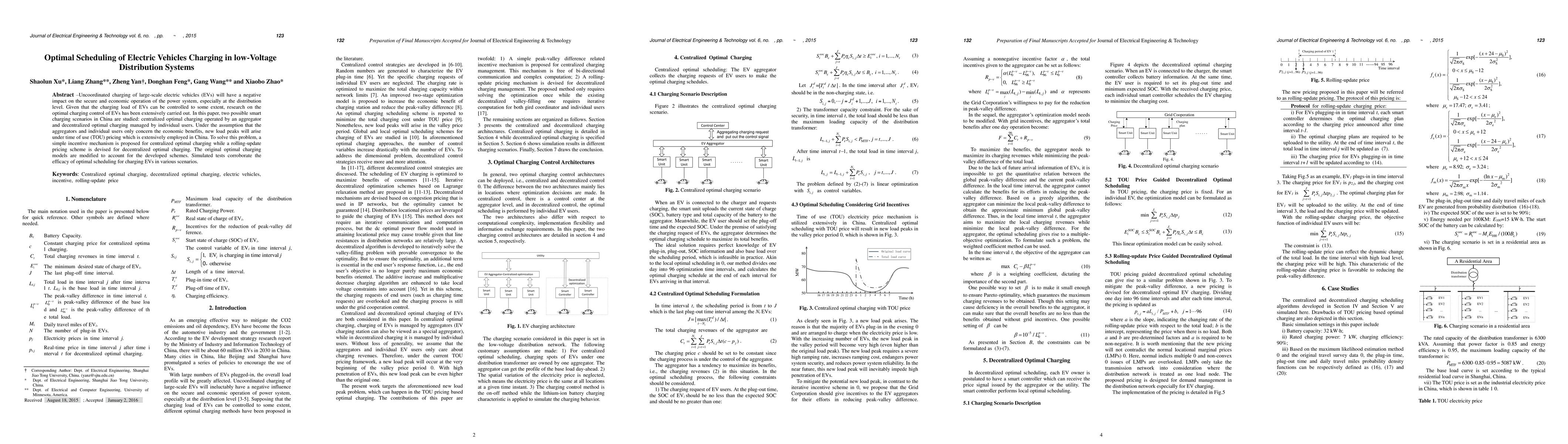 This paper explores optimal charging strategies for electric vehicles (EVs) in low-voltage distribution systems, addressing the negative impact of uncoordinated charging on power systems. It proposes incentive mechanisms for centralized and decentralized charging scenarios to mitigate new load peaks under time-of-use pricing, demonstrating their effectiveness through simulations.