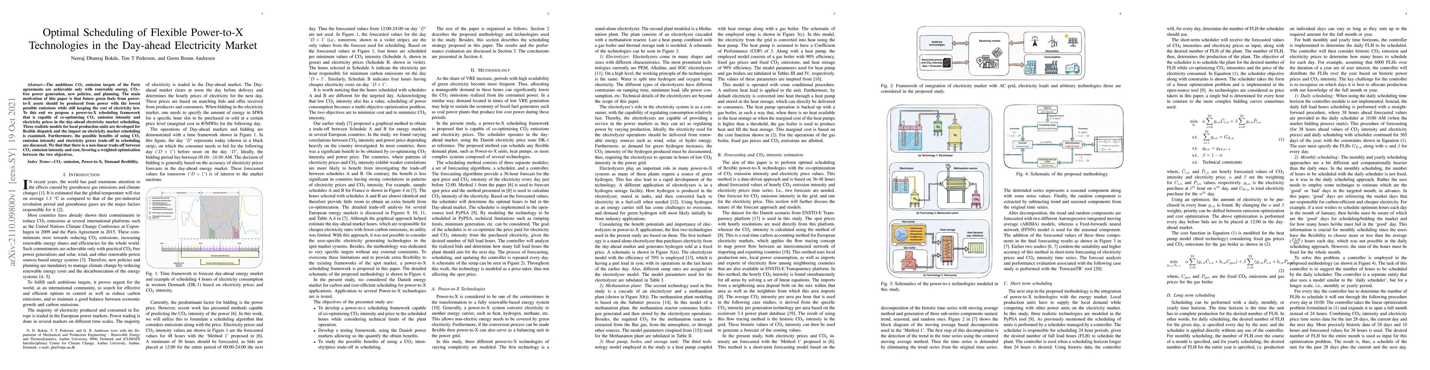 This paper proposes a scheduling framework for optimizing CO2 emission intensity and electricity prices in the day-ahead electricity market, focusing on integrating flexible power-to-X technologies. The study finds a non-linear trade-off between emissions and cost, advocating for a balanced optimization approach.