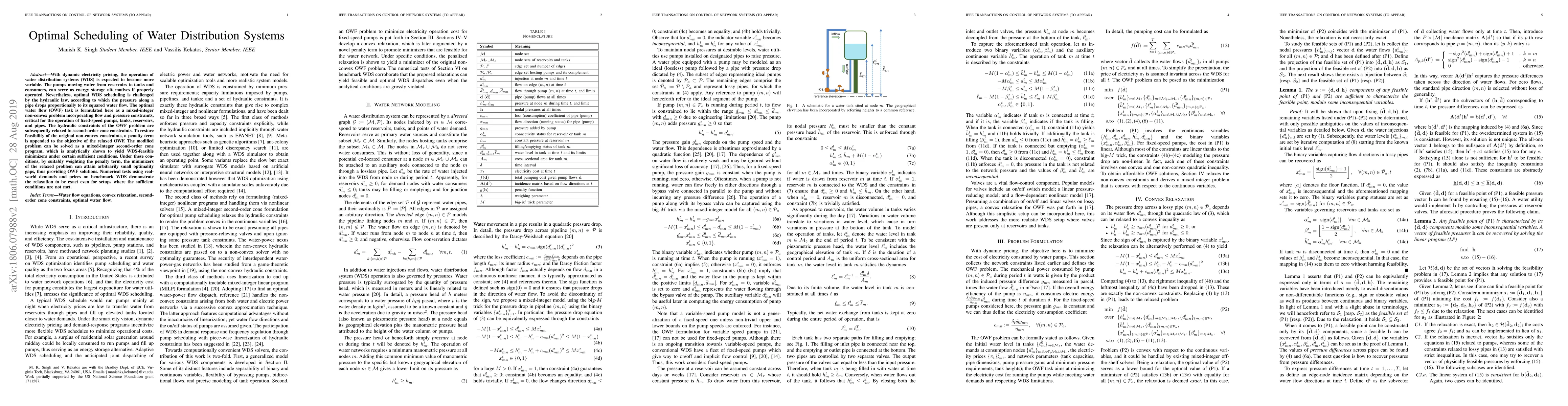 Researchers developed a method to optimize water distribution system scheduling considering dynamic electricity pricing, which can also serve as energy storage. Their approach relaxes hydraulic constraints while maintaining feasibility, allowing for optimal solutions with arbitrarily small gaps.