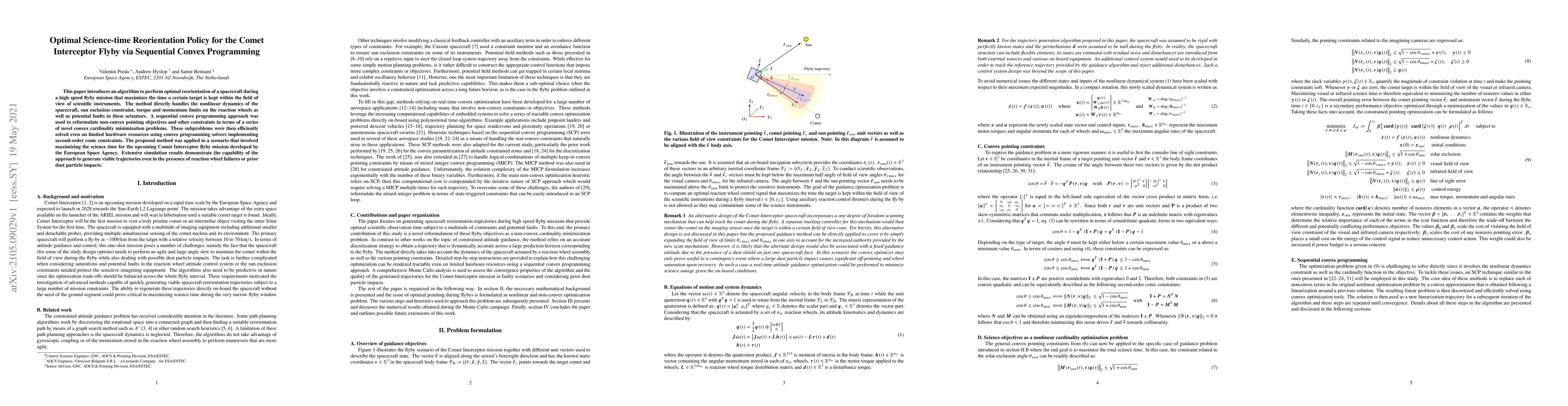 This paper proposes a sequential convex programming algorithm for optimal spacecraft reorientation during a high-speed flyby mission, maximizing science time by addressing nonlinear dynamics and constraints. The method efficiently solves convex subproblems to generate viable trajectories even with actuator faults, demonstrated through simulations for the Comet Interceptor mission.