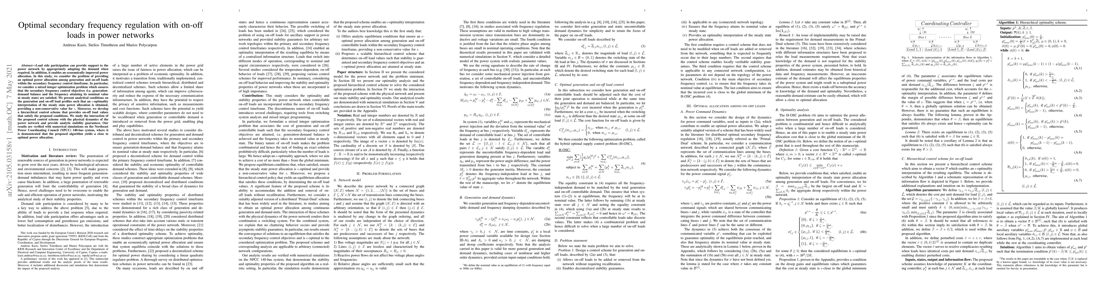 Load side participation can provide support to the power network by appropriately adapting the demand when required. In addition, it enables an economically improved power allocation. In this study, we consider the problem of providing an optimal power allocation among generation and on-off loads within the secondary frequency control timeframe. In particular, we consider a mixed integer optimization problem which ensures that the secondary frequency control objectives (i.e. generation/demand balance and the frequency attaining its nominal value at steady state) are satisfied. We present analytical conditions on the generation and on-off load profiles such that an $\epsilon$-optimality interpretation of the steady state power allocation is obtained, providing a non-conservative value for $\epsilon$. Moreover, we develop a hierarchical control scheme that provides on-off load values that satisfy the proposed conditions. We study the interaction of the proposed control scheme with the physical dynamics of the power network and provide analytic stability guarantees. Our results are verified with numerical simulations on the Northeast Power Coordinating Council (NPCC) 140-bus system, where it is demonstrated that the proposed algorithm yields a close to optimal power allocation.