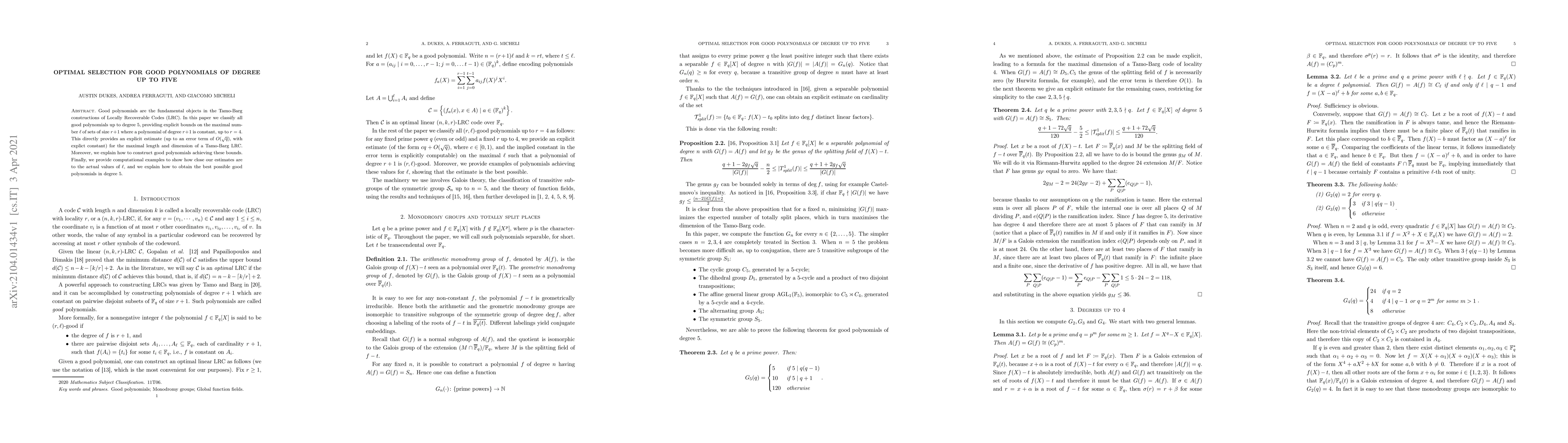 Good polynomials are the fundamental objects in the Tamo-Barg constructions of Locally Recoverable Codes (LRC). In this paper we classify all good polynomials up to degree $5$, providing explicit bounds on the maximal number $\ell$ of sets of size $r+1$ where a polynomial of degree $r+1$ is constant, up to $r=4$. This directly provides an explicit estimate (up to an error term of $O(\sqrt{q})$, with explict constant) for the maximal length and dimension of a Tamo-Barg LRC. Moreover, we explain how to construct good polynomials achieving these bounds. Finally, we provide computational examples to show how close our estimates are to the actual values of $\ell$, and we explain how to obtain the best possible good polynomials in degree $5$.