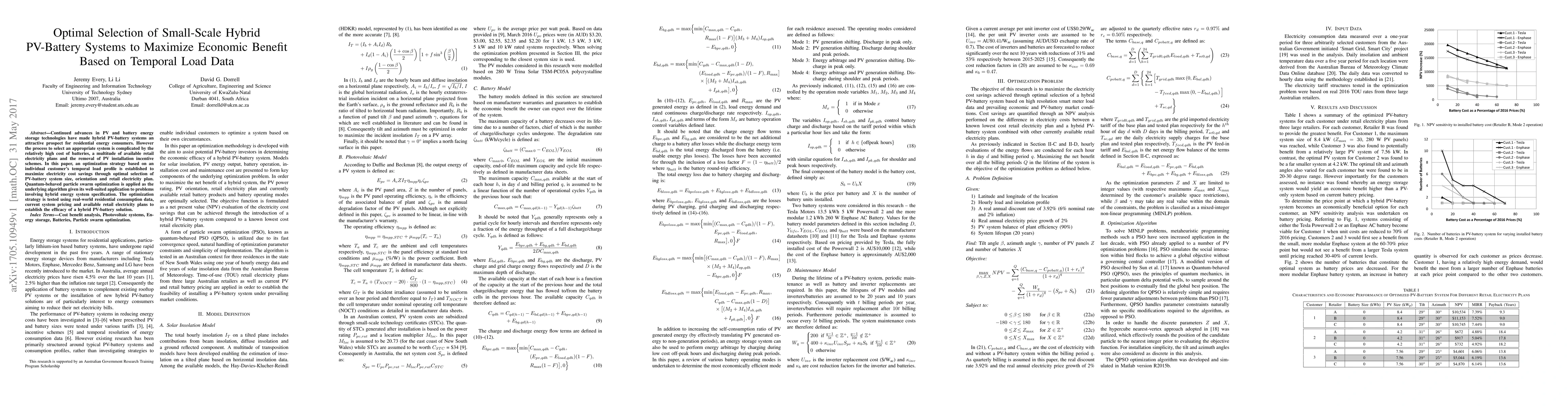 This paper proposes an optimization strategy to select the most cost-effective small-scale hybrid PV-battery systems for residential consumers, using quantum-behaved particle swarm optimization to maximize savings based on individual temporal load profiles. The approach evaluates system size, orientation, and retail electricity plans, validated with real-world consumption data.