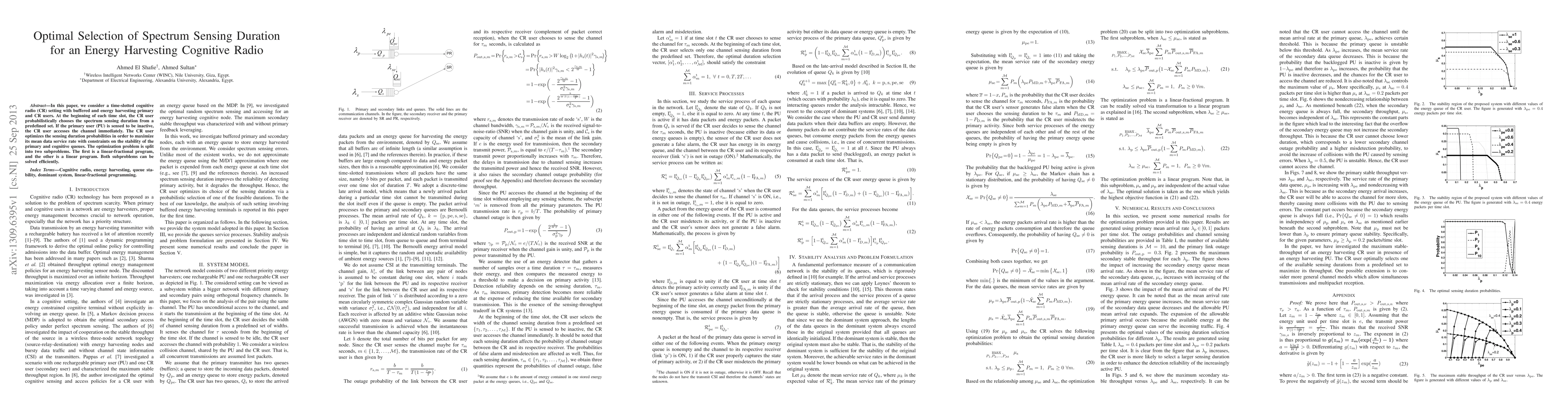 This paper optimizes the spectrum sensing duration for energy harvesting cognitive radios to maximize data service rates while ensuring queue stability for both primary and cognitive users. The optimization problem is divided into a linear-fractional and a linear program, both of which are efficiently solvable.