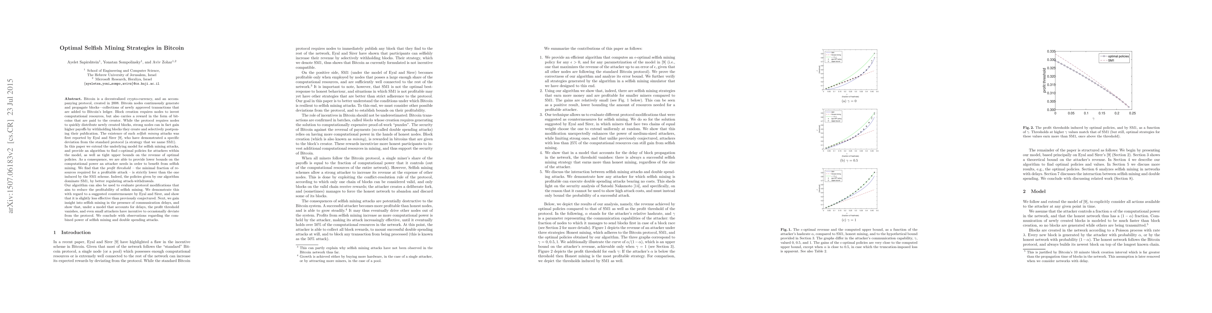 Bitcoin is a decentralized crypto-currency, and an accompanying protocol, created in 2008. Bitcoin nodes continuously generate and propagate blocks---collections of newly approved transactions that are added to Bitcoin's ledger. Block creation requires nodes to invest computational resources, but also carries a reward in the form of bitcoins that are paid to the creator. While the protocol requires nodes to quickly distribute newly created blocks, strong nodes can in fact gain higher payoffs by withholding blocks they create and selectively postponing their publication. The existence of such selfish mining attacks was first reported by Eyal and Sirer, who have demonstrated a specific deviation from the standard protocol (a strategy that we name SM1). In this paper we extend the underlying model for selfish mining attacks, and provide an algorithm to find $\epsilon$-optimal policies for attackers within the model, as well as tight upper bounds on the revenue of optimal policies. As a consequence, we are able to provide lower bounds on the computational power an attacker needs in order to benefit from selfish mining. We find that the profit threshold -- the minimal fraction of resources required for a profitable attack -- is strictly lower than the one induced by the SM1 scheme. Indeed, the policies given by our algorithm dominate SM1, by better regulating attack-withdrawals. Using our algorithm, we show that Eyal and Sirer's suggested countermeasure to selfish mining is slightly less effective than previously conjectured. Next, we gain insight into selfish mining in the presence of communication delays, and show that, under a model that accounts for delays, the profit threshold vanishes, and even small attackers have incentive to occasionally deviate from the protocol. We conclude with observations regarding the combined power of selfish mining and double spending attacks.