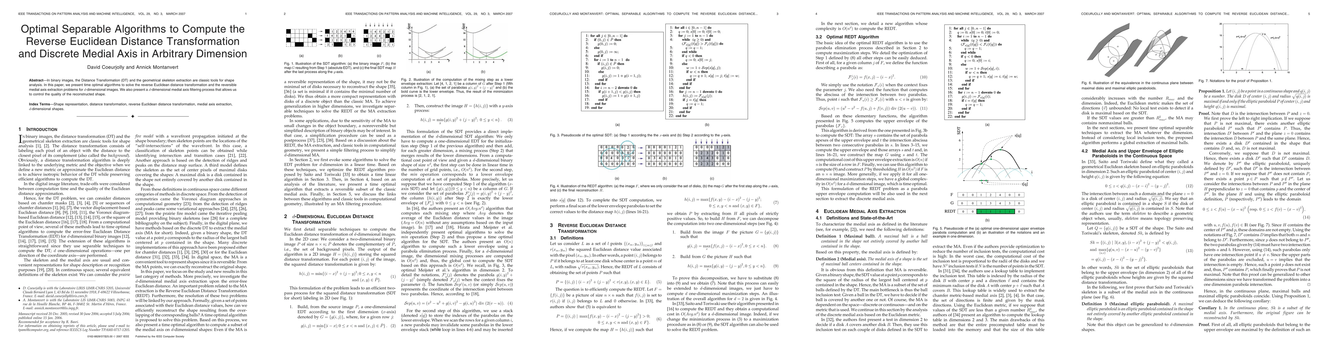 This paper introduces optimal separable algorithms for computing the reverse Euclidean distance transformation and the discrete medial axis in $d$-dimensional images, along with a $d$-dimensional medial axis filtering process to control shape reconstruction quality.