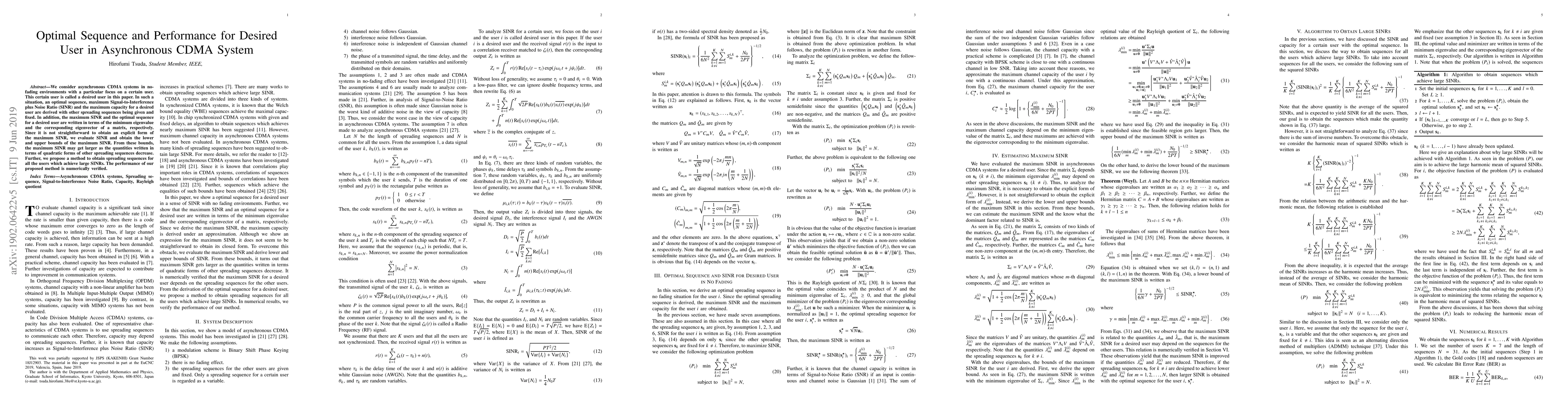 We consider asynchronous CDMA systems in no-fading environments with a particular focus on a certain user. This certain user is called a desired user in this paper. In such a situation, an optimal sequence, maximum Signal-to-Interference plus Noise Ratio (SINR) and the maximum capacity for a desired user are derived with other spreading sequences being given and fixed. In addition, the maximum SINR and the optimal sequence for a desired user are written in terms of the minimum eigenvalue and the corresponding eigenvector of a matrix, respectively. Since it is not straightforward to obtain an explicit form of the maximum SINR, we evaluate SINR and obtain the lower and upper bounds of the maximum SINR. From these bounds, the maximum SINR may get larger as the quantities written in terms of quadratic forms of other spreading sequences decrease. Further, we propose a method to obtain spreading sequences for all the users which achieve large SINRs. The performance of our proposed method is numerically verified.