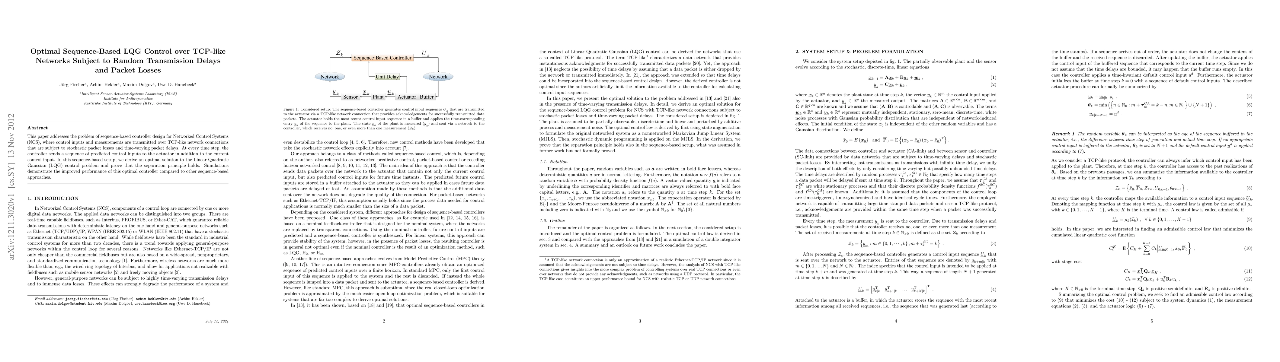This paper develops an optimal sequence-based controller for Networked Control Systems over TCP-like networks with random delays and packet losses, solving the Linear Quadratic Gaussian control problem and proving the separation principle. Simulation results show superior performance over alternative sequence-based methods.