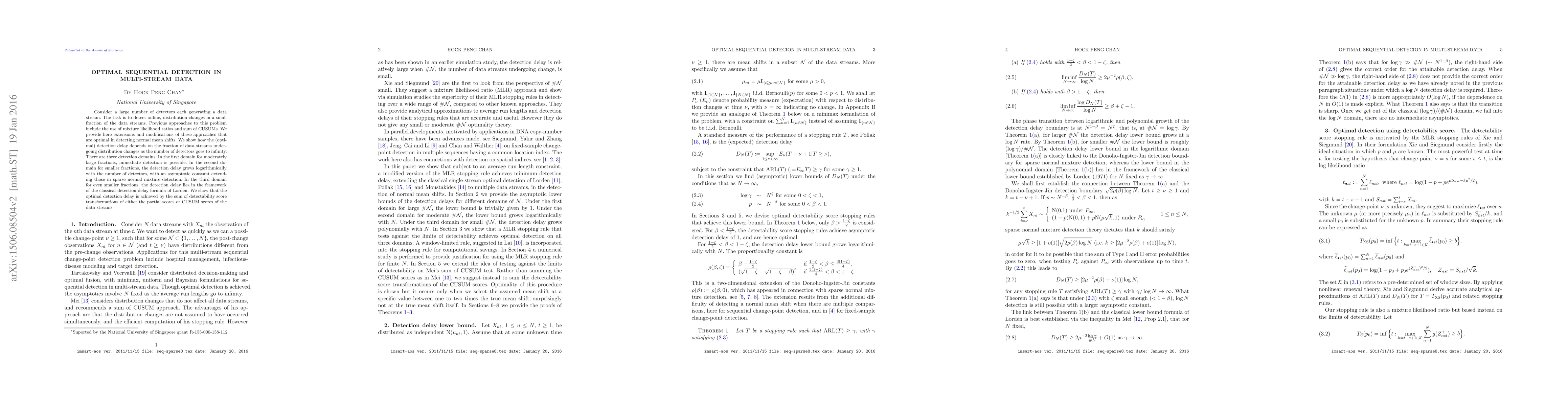 This research paper explores optimal sequential detection in multi-stream data to detect normal mean shifts with varying fractions of data streams. It finds that the detection delay depends on the fraction of affected streams and proposes a method for achieving optimal detection delay using sum of detectability score transformations.