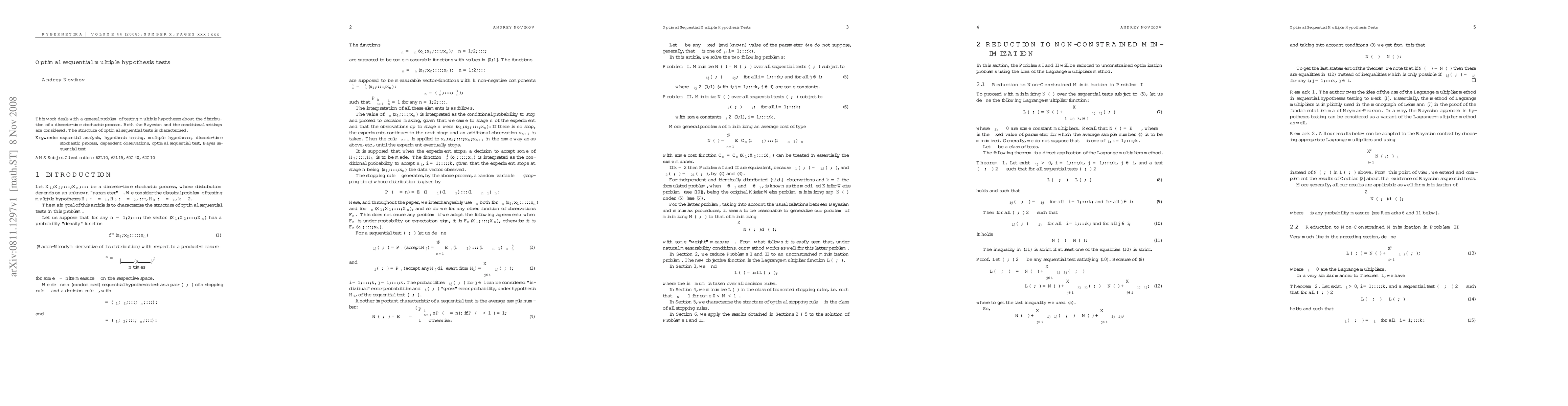 This paper explores the optimal design of sequential tests for multiple hypotheses concerning the distribution of a discrete-time stochastic process, considering both Bayesian and conditional frameworks, and characterizes the structure of these optimal tests.