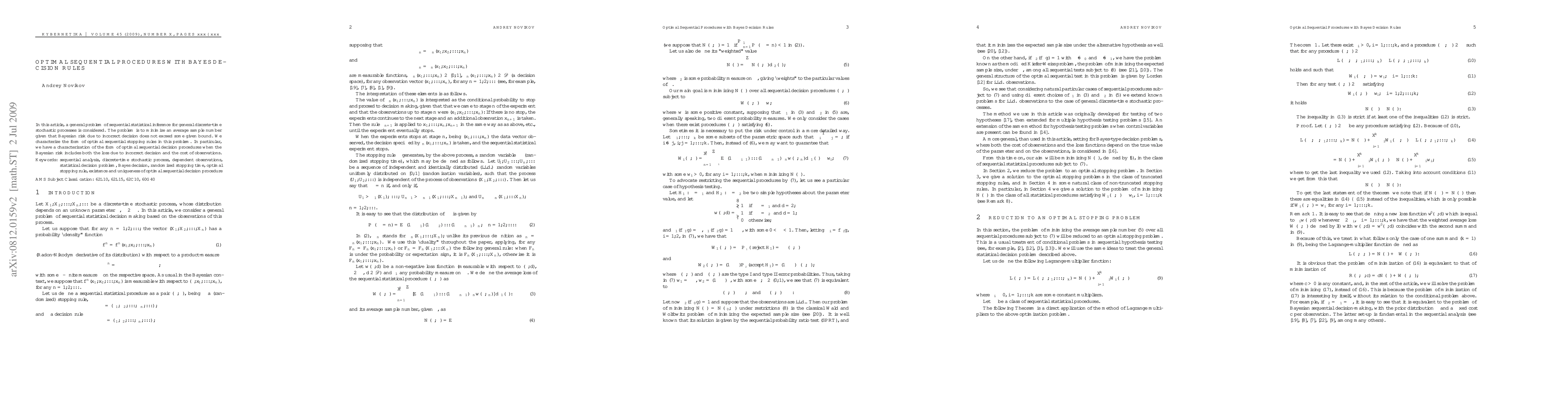 In this article, a general problem of sequential statistical inference for general discrete-time stochastic processes is considered. The problem is to minimize an average sample number given that Bayesian risk due to incorrect decision does not exceed some given bound. We characterize the form of optimal sequential stopping rules in this problem. In particular, we have a characterization of the form of optimal sequential decision procedures when the Bayesian risk includes both the loss due to incorrect decision and the cost of observations.