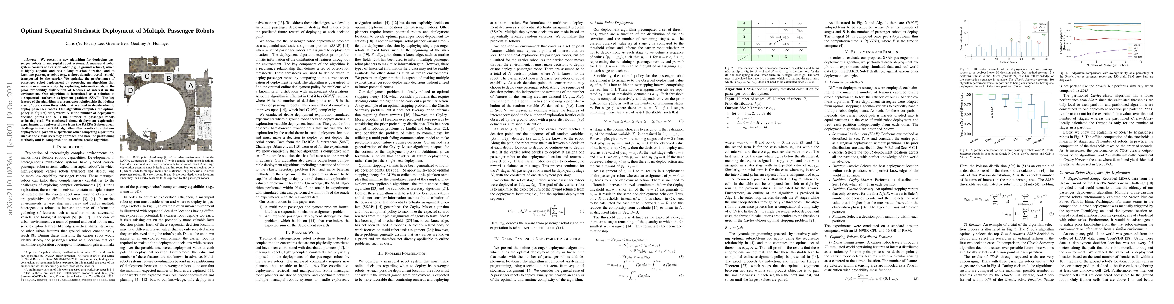 This paper introduces an algorithm for optimizing the sequential deployment of multiple passenger robots in marsupial robot systems, achieving optimal deployment through a sequential stochastic assignment problem solution. Experiments on real-world data demonstrate superior performance compared to other methods.