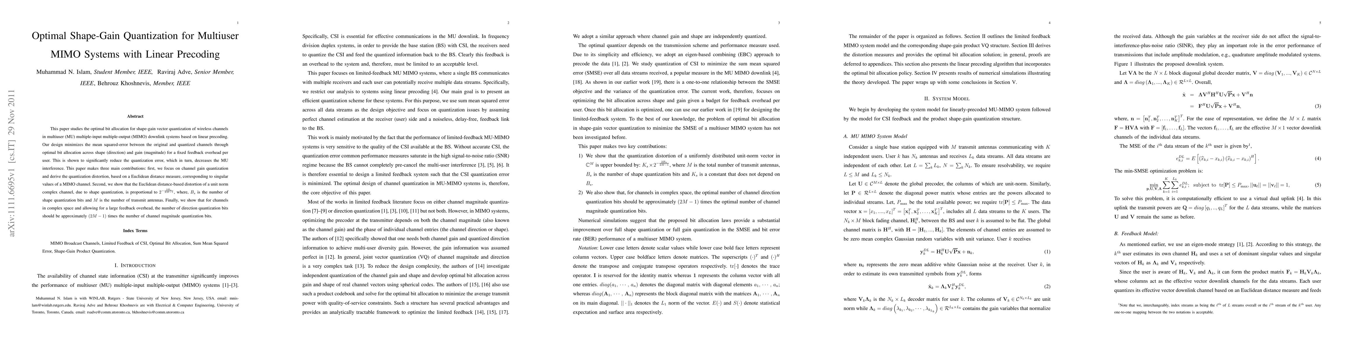This paper proposes an optimal bit allocation strategy for shape-gain vector quantization in multiuser MIMO systems with linear precoding, minimizing mean squared-error and reducing MU interference. It finds that the optimal number of direction quantization bits should be approximately (2M - 1) times the number of gain quantization bits for large feedback overhead.