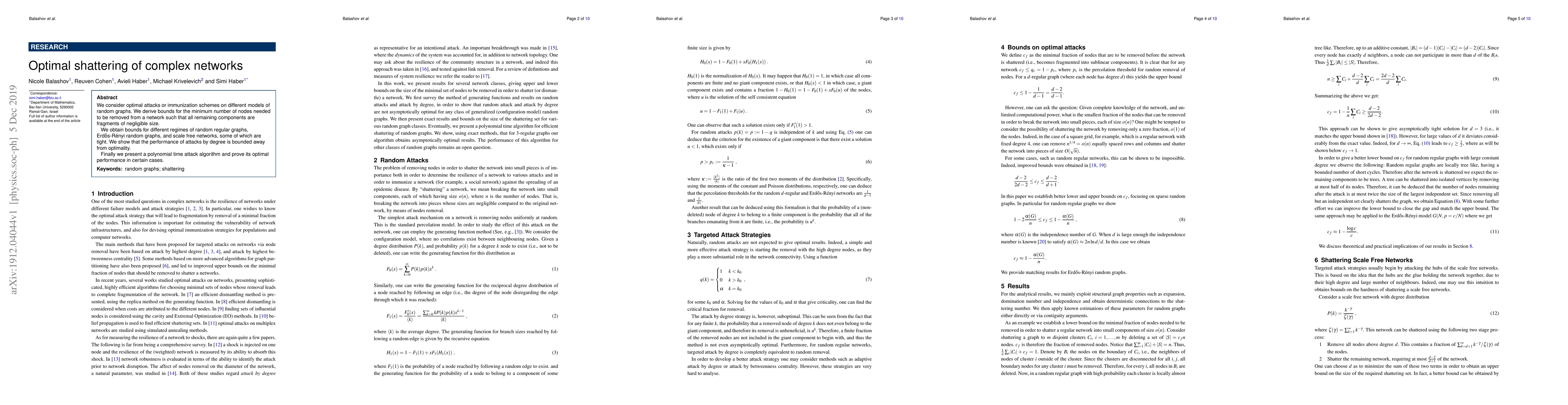 The paper presents novel bounds on the minimum nodes required to shatter complex networks and proves the suboptimality of degree-based attacks, along with a polynomial time algorithm for optimal shattering in certain cases.