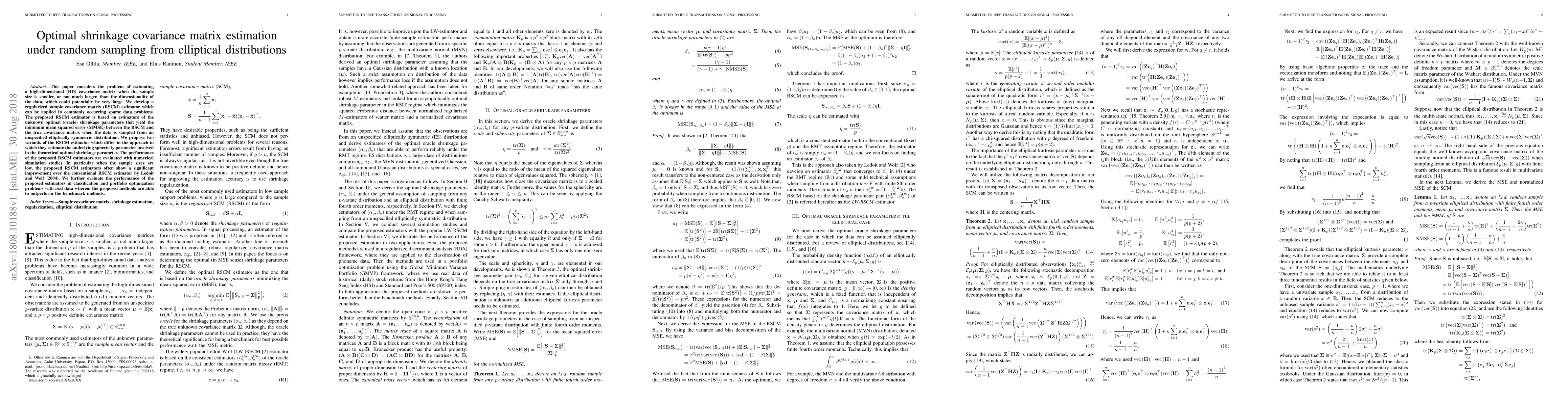 This paper considers the problem of estimating a high-dimensional (HD) covariance matrix when the sample size is smaller, or not much larger, than the dimensionality of the data, which could potentially be very large. We develop a regularized sample covariance matrix (RSCM) estimator which can be applied in commonly occurring sparse data problems. The proposed RSCM estimator is based on estimators of the unknown optimal (oracle) shrinkage parameters that yield the minimum mean squared error (MMSE) between the RSCM and the true covariance matrix when the data is sampled from an unspecified elliptically symmetric distribution. We propose two variants of the RSCM estimator which differ in the approach in which they estimate the underlying sphericity parameter involved in the theoretical optimal shrinkage parameter. The performance of the proposed RSCM estimators are evaluated with numerical simulation studies. In particular when the sample sizes are low, the proposed RSCM estimators often show a significant improvement over the conventional RSCM estimator by Ledoit and Wolf (2004). We further evaluate the performance of the proposed estimators in classification and portfolio optimization problems with real data wherein the proposed methods are able to outperform the benchmark methods.