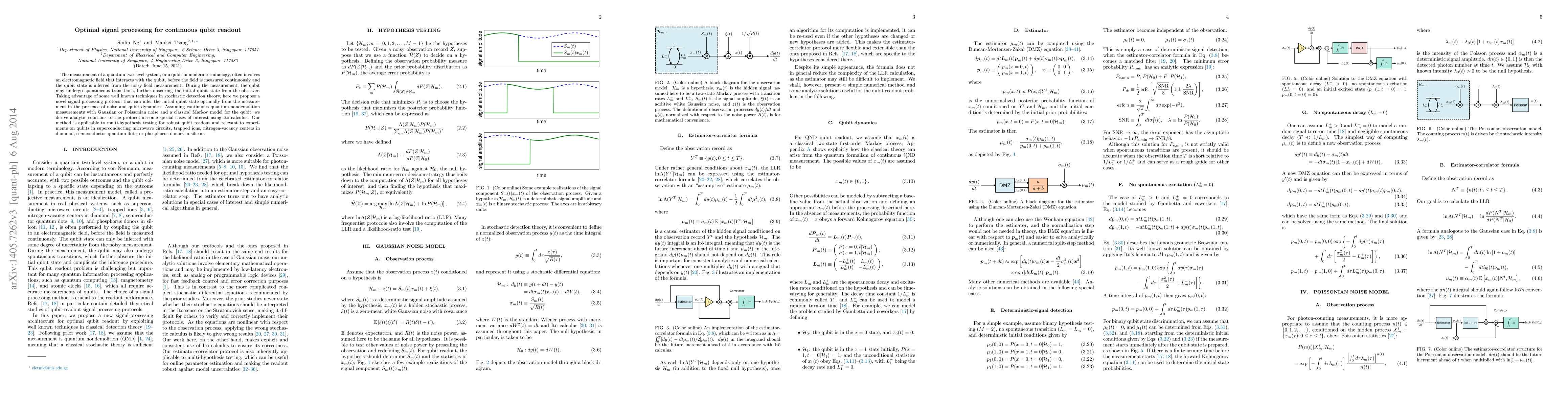 The measurement of a quantum two-level system, or a qubit in modern terminology, often involves an electromagnetic field that interacts with the qubit, before the field is measured continuously and the qubit state is inferred from the noisy field measurement. During the measurement, the qubit may undergo spontaneous transitions, further obscuring the initial qubit state from the observer. Taking advantage of some well known techniques in stochastic detection theory, here we propose a novel signal processing protocol that can infer the initial qubit state optimally from the measurement in the presence of noise and qubit dynamics. Assuming continuous quantum-nondemolition measurements with Gaussian or Poissonian noise and a classical Markov model for the qubit, we derive analytic solutions to the protocol in some special cases of interest using It\={o} calculus. Our method is applicable to multi-hypothesis testing for robust qubit readout and relevant to experiments on qubits in superconducting microwave circuits, trapped ions, nitrogen-vacancy centers in diamond, semiconductor quantum dots, or phosphorus donors in silicon.