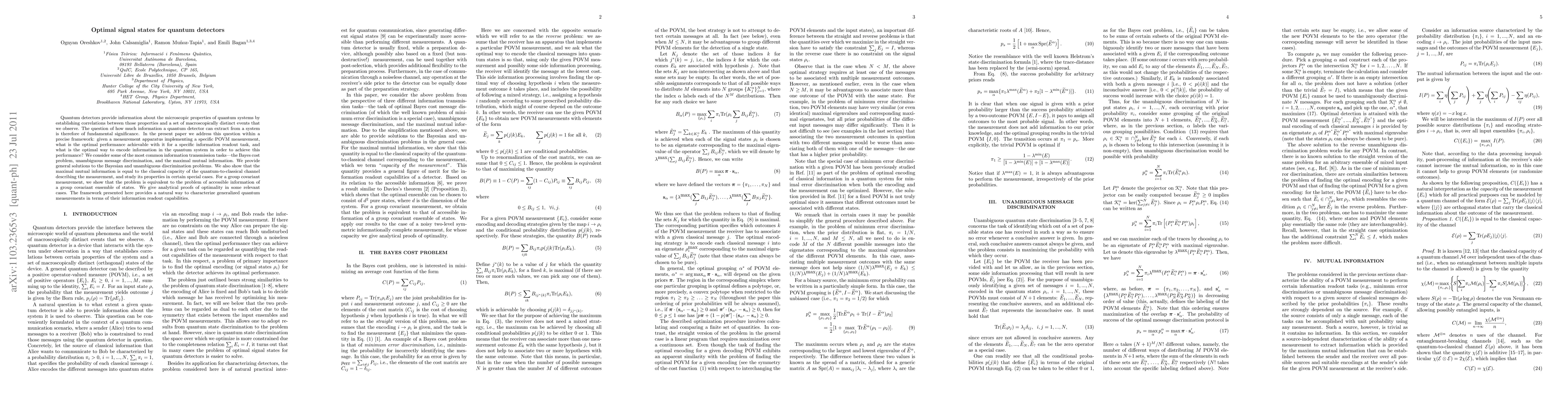 This paper presents a framework to determine the optimal performance of quantum detectors for specific information tasks, like Bayes cost and unambiguous discrimination problems. It offers solutions for these tasks and explores the maximal mutual information as a measurement capacity, providing analytical proofs for a noisy two-level symmetric measurement example.