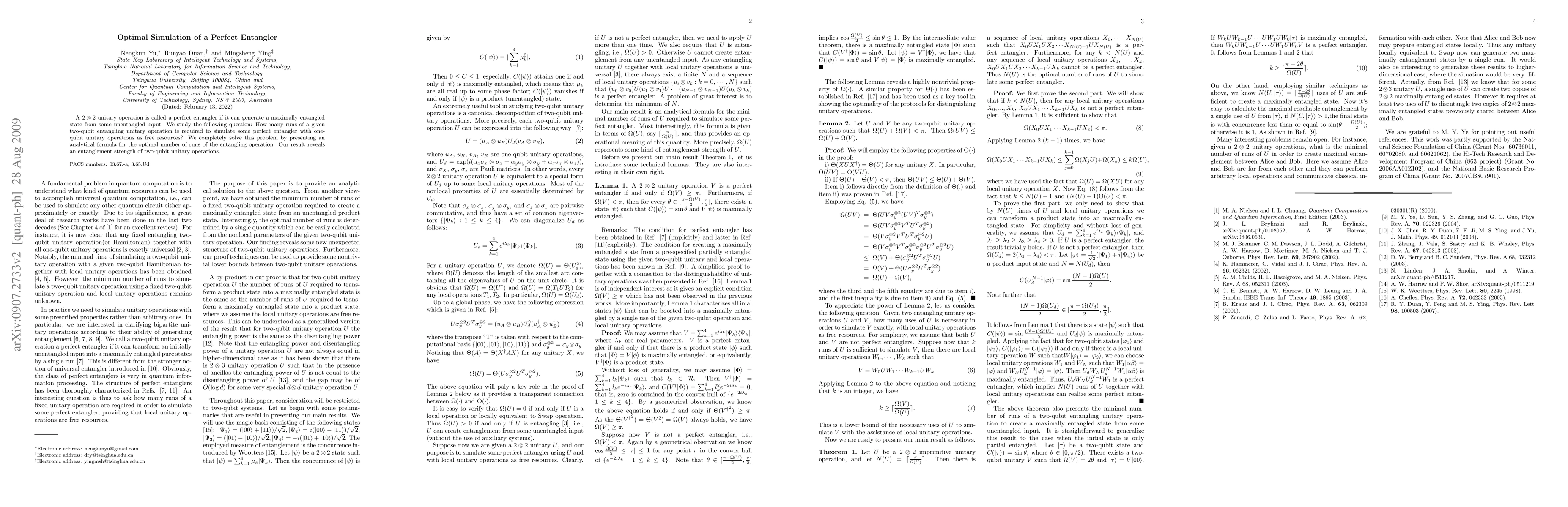 This paper determines the optimal number of iterations for a $2\otimes 2$ unitary operation to simulate a perfect entangler using one-qubit unitary operations, providing an analytical formula that reveals the entanglement strength of such operations.