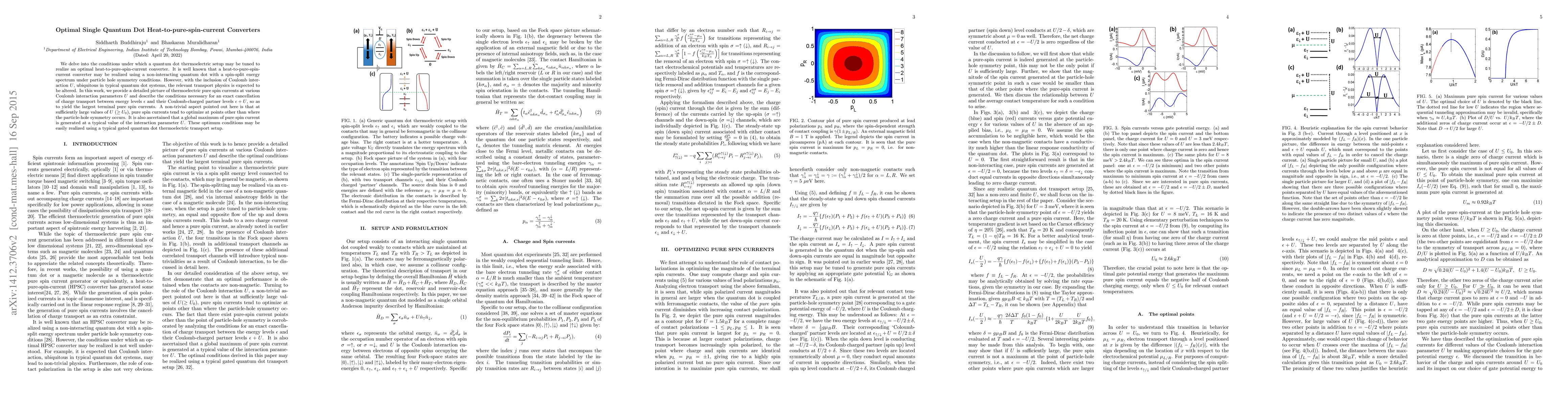 This paper explores how to optimize a quantum dot system to convert heat into pure spin currents, considering the effects of Coulomb interaction. It identifies specific conditions under which the largest pure spin currents can be achieved, even when interactions deviate from particle-hole symmetry, and suggests practical setups for realizing these optimal conditions.