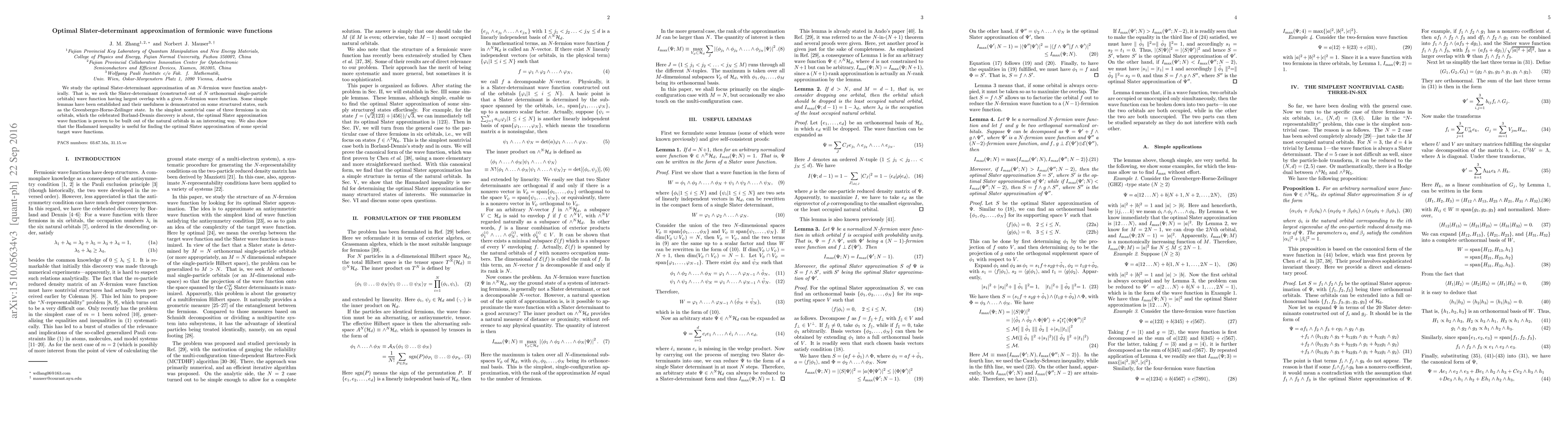 This paper investigates the optimal Slater-determinant approximation for $N$-fermion wave functions, focusing on the construction of the best overlap Slater determinant from $N$ orthonormal single-particle orbitals. It demonstrates the utility of simple lemmas and the Hadamard inequality in finding such approximations, particularly for structured states like the Greenberger-Horne-Zeilinger state and the Borland-Dennis three-fermion case.