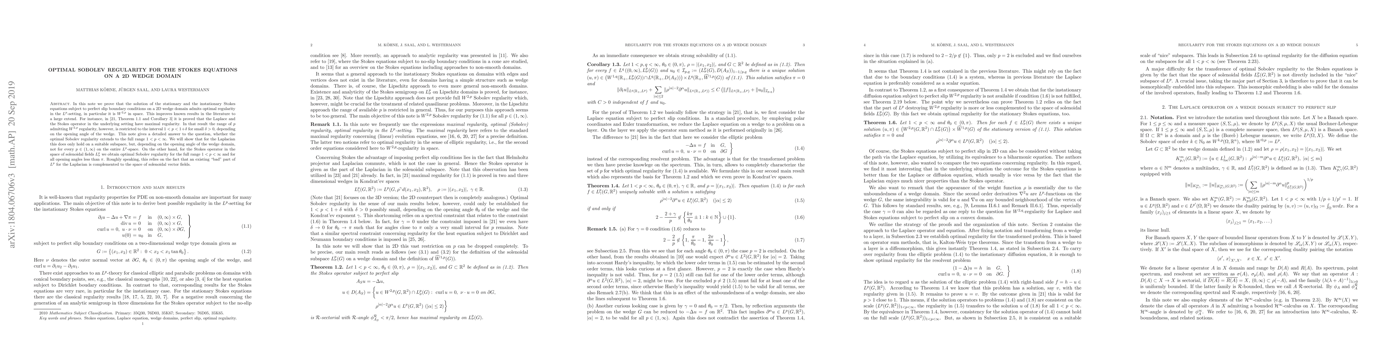0$, depending on the opening angle of the wedge. This note gives a detailed answer to the question, whether the optimal Sobolev regularity extends to the full range $1