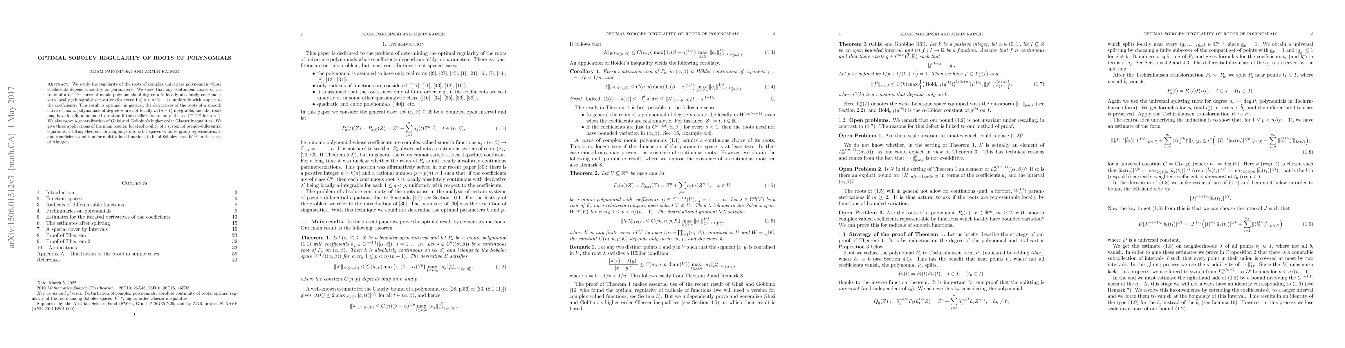 This paper investigates the optimal Sobolev regularity of roots of complex polynomials with smoothly varying coefficients, demonstrating that roots of $C^{n-1,1}$-curves of monic polynomials of degree $n$ are locally absolutely continuous with locally $p$-integrable derivatives for $1 \le p < n/(n-1)$. The results show that this level of regularity is optimal and provide applications to pseudo-differential equations and multi-valued function theory.