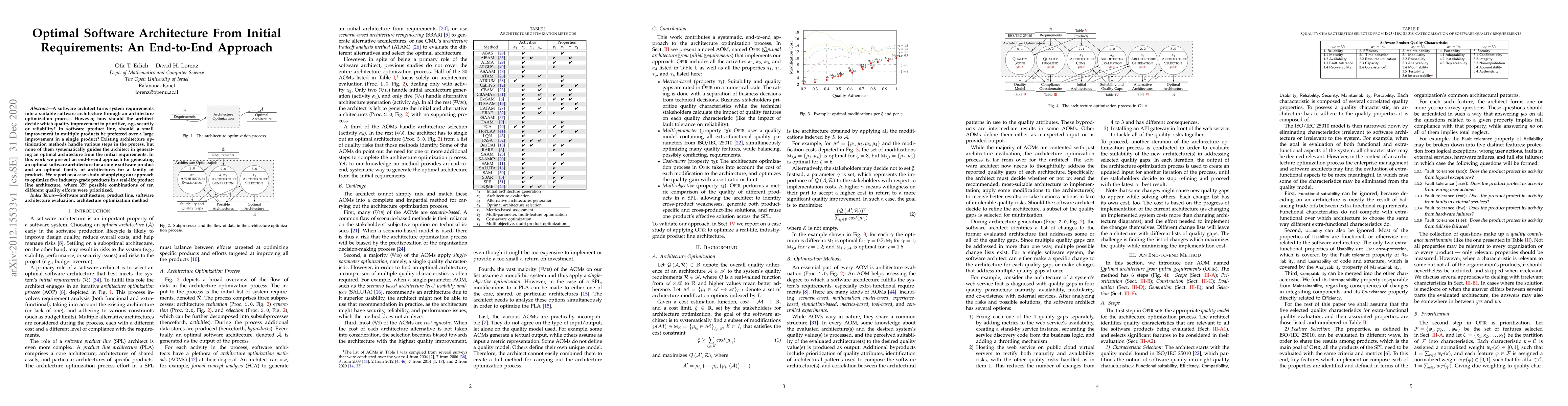 This paper presents an end-to-end approach for generating optimal software architectures from initial requirements, addressing the challenge of prioritizing quality improvements like security or reliability. The method is demonstrated through a case study optimizing five industry products, evaluating 359 combinations of ten quality efforts.