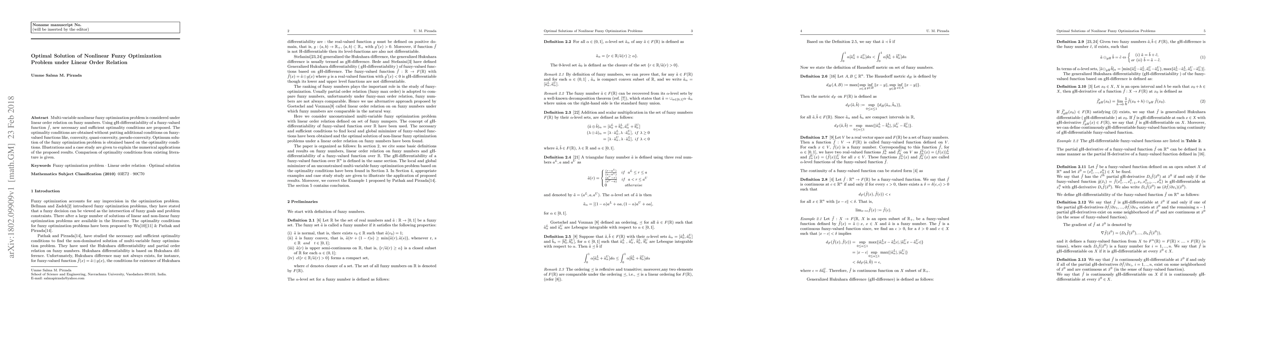 Multi-variable nonlinear fuzzy optimization problem is considered under linear order relation on fuzzy numbers. Using gH-differentiability of a fuzzy-valued function $\tilde{f}$, new necessary and sufficient optimality conditions are proposed. The optimality conditions are obtained without putting additional conditions on fuzzy-valued functions like, convexity, quasi-convexity, pseudo-convexity. Optimum solution of the fuzzy optimization problem is obtained based on the optimality conditions. Illustrations and a case study are given to explain the numerical applications of the proposed results. Comparison of optimality conditions from existing literature is given.
