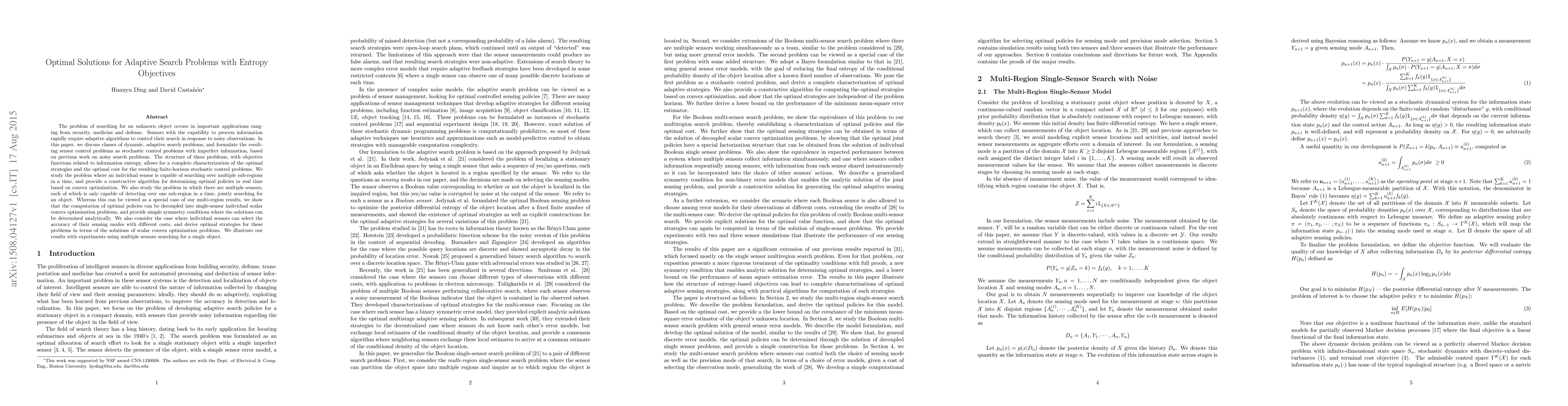 Researchers develop algorithms for adaptive search problems with entropy objectives, enabling sensors to optimize their search strategies in real-time and achieve optimal cost performance.