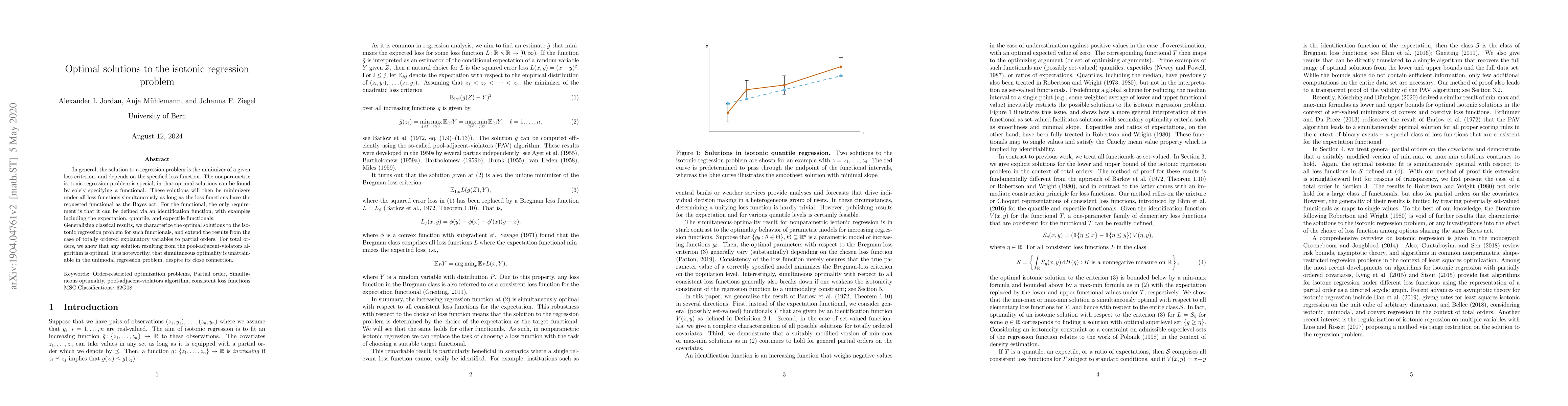 This paper characterizes optimal solutions to the isotonic regression problem by defining functionals like expectation, quantile, and expectile, and shows that solutions derived from the pool-adjacent-violators algorithm are optimal for total orders. It extends these results to partial orders and highlights the difference with unimodal regression.