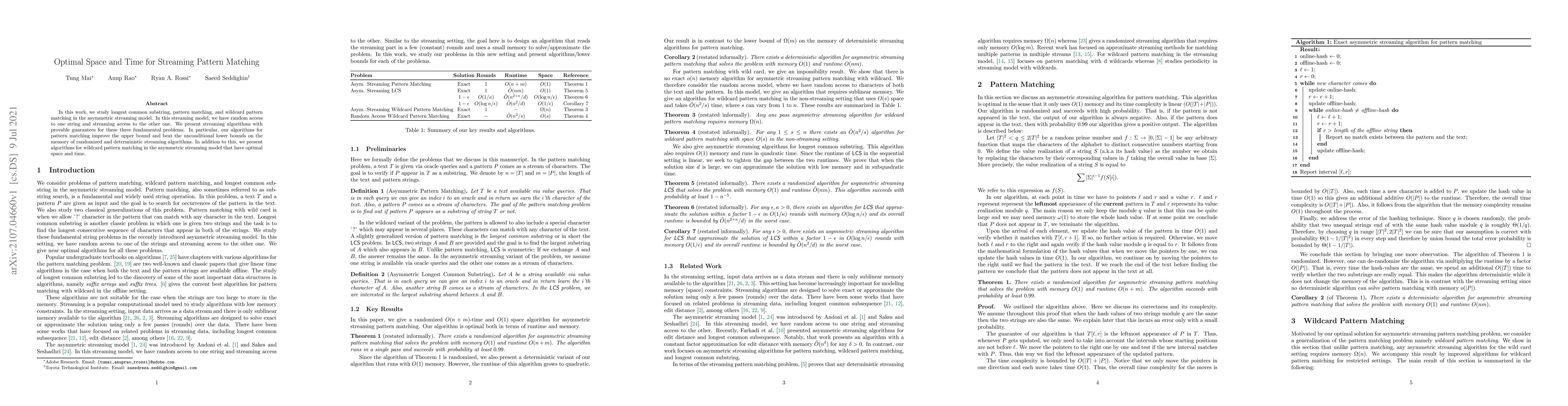 This paper presents streaming algorithms for longest common substring, pattern matching, and wildcard pattern matching in an asymmetric streaming model, improving memory efficiency and achieving optimal space and time for wildcard pattern matching. The algorithms surpass existing upper bounds and meet unconditional lower bounds.