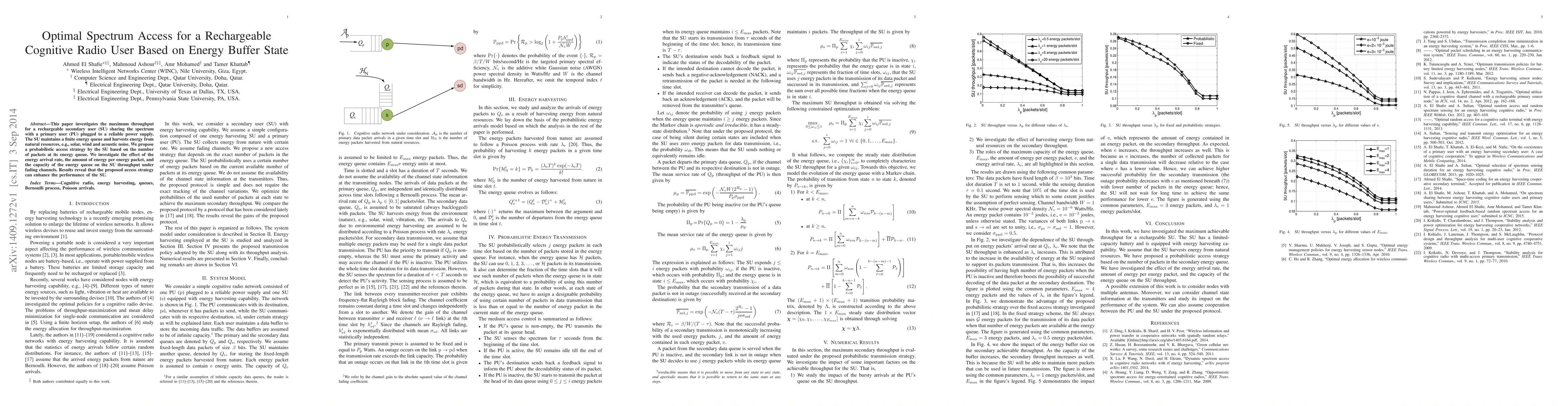 This paper investigates the maximum throughput for a rechargeable secondary user (SU) sharing the spectrum with a primary user (PU) plugged to a reliable power supply. The SU maintains a finite energy queue and harvests energy from natural resources, e.g., solar, wind and acoustic noise. We propose a probabilistic access strategy by the SU based on the number of packets at its energy queue. We investigate the effect of the energy arrival rate, the amount of energy per energy packet, and the capacity of the energy queue on the SU throughput under fading channels. Results reveal that the proposed access strategy can enhance the performance of the SU.