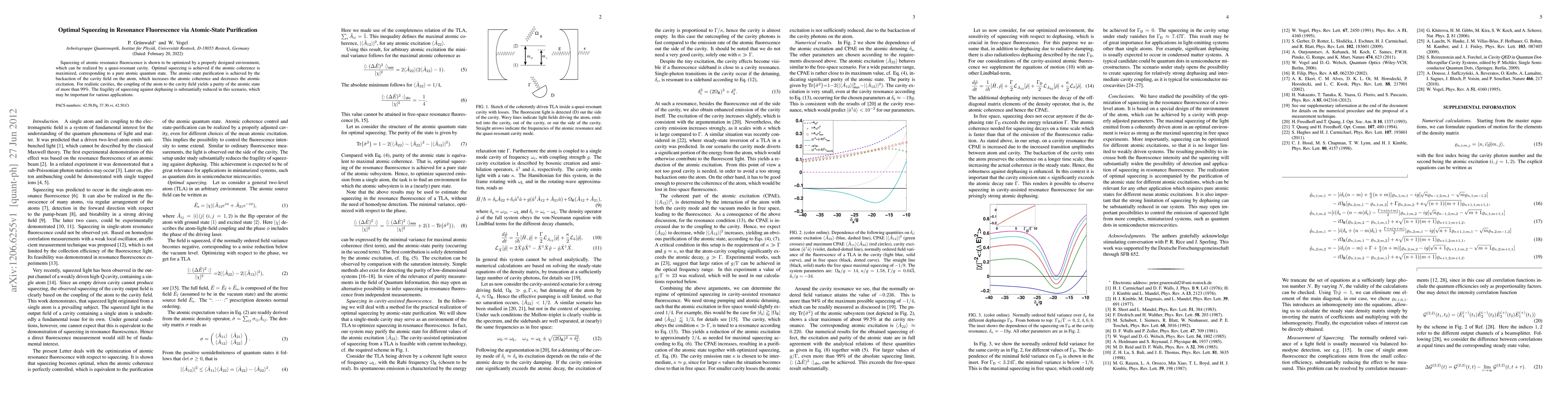 This paper demonstrates that optimal squeezing in atomic resonance fluorescence can be achieved through atomic-state purification in a quasi-resonant cavity, maximizing atomic coherence and reducing excitation. The backaction of the cavity field enhances atomic coherence, leading to a purity of over 99%, and significantly reduces the fragility of squeezing against dephasing.