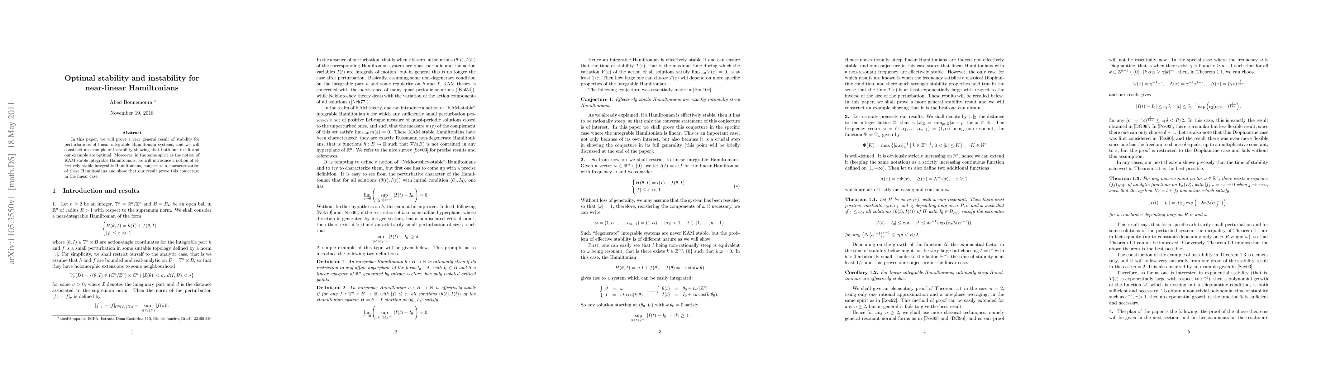 This paper proves a general stability result for perturbations of linear integrable Hamiltonian systems and constructs an optimal example of instability. It introduces the concept of effectively stable integrable Hamiltonians, conjectures a characterization, and demonstrates that the stability result supports this conjecture in the linear case.
