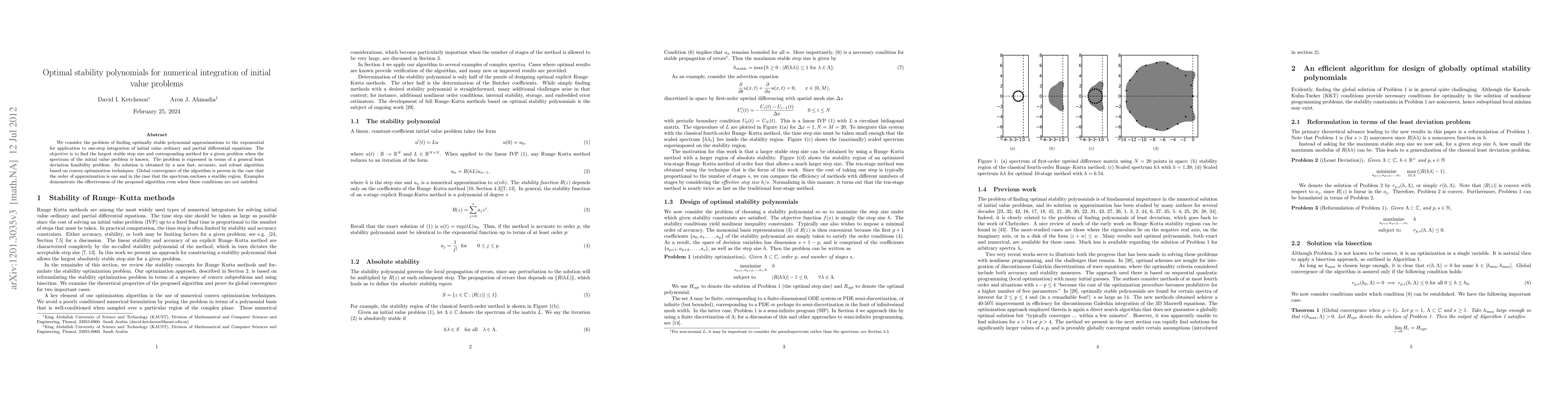 The paper introduces a novel algorithm based on convex optimization techniques to solve the least deviation feasibility problem, providing optimal stability polynomial approximations for numerical integration of initial value problems.