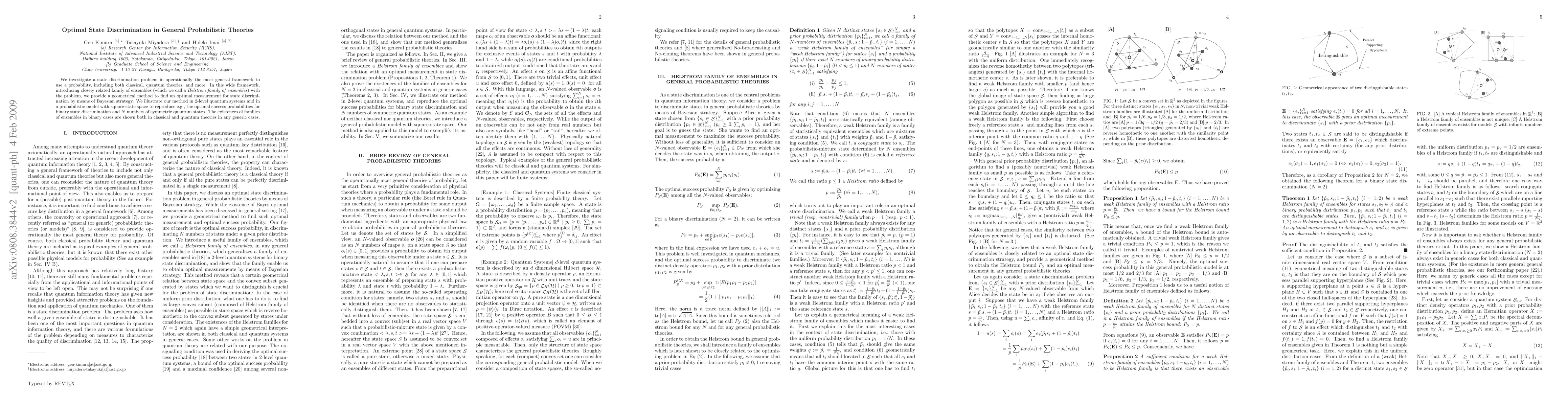 The research introduces a Helstrom family of ensembles in general probabilistic theories, providing a geometrical method to find an optimal measurement for state discrimination using a Bayesian strategy. It applies this method to 2-level quantum systems and a probabilistic model with square-state space.