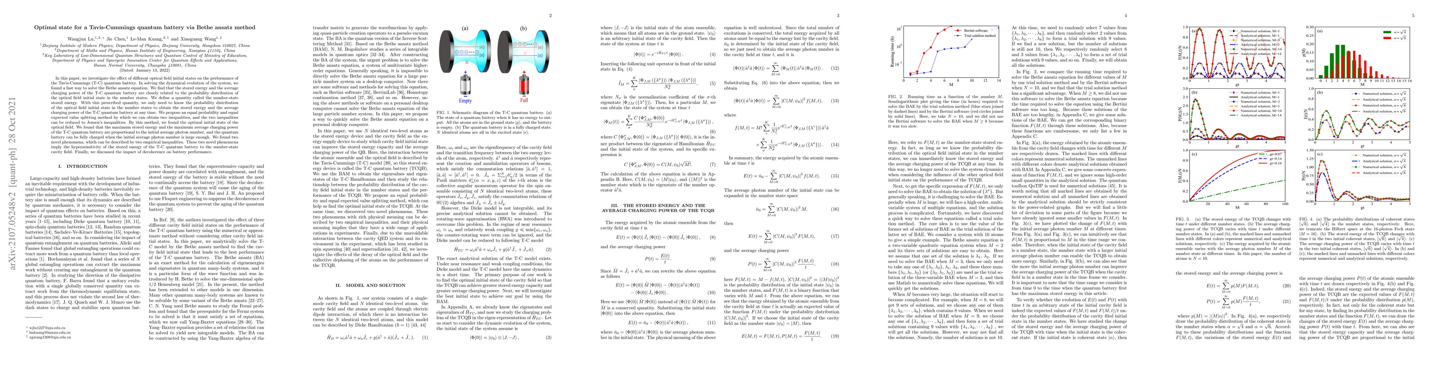 Researchers found that the optimal initial state of a Tavis-Cummings quantum battery can maximize stored energy and average charging power, and that the battery's performance is sensitive to the number-state cavity field.