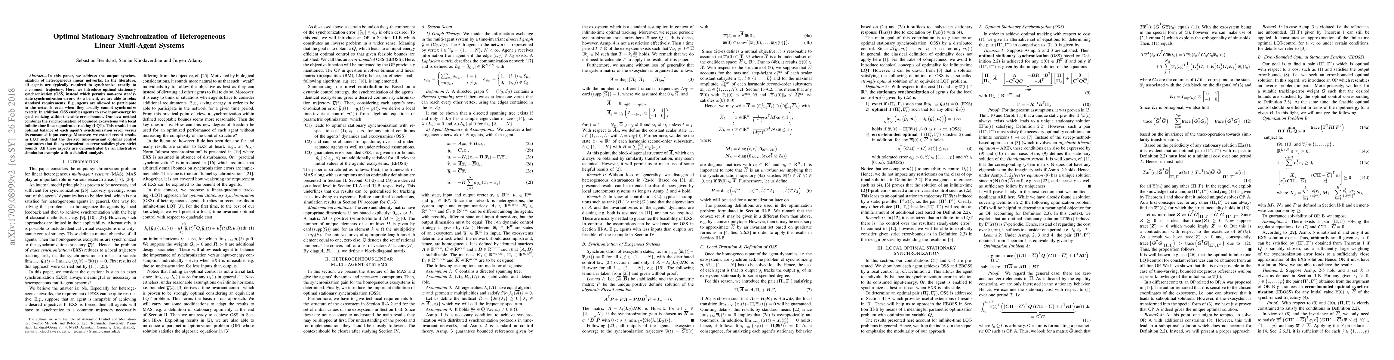 This paper introduces Optimal Stationary Synchronization (OSS) for heterogeneous linear multi-agent systems, allowing for non-zero steady-state synchronization errors and reducing input-energy consumption.