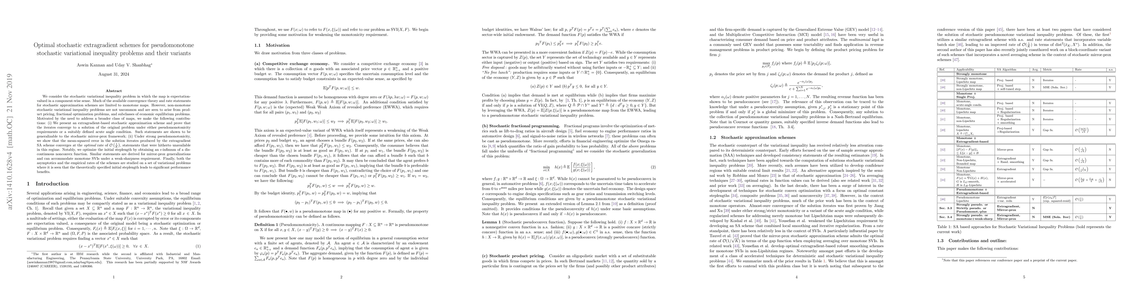 We consider the stochastic variational inequality problem in which the map is expectation-valued in a component-wise sense. Much of the available convergence theory and rate statements for stochastic approximation schemes are limited to monotone maps. However, non-monotone stochastic variational inequality problems are not uncommon and are seen to arise from product pricing, fractional optimization problems, and subclasses of economic equilibrium problems. Motivated by the need to address a broader class of maps, we make the following contributions: (i) We present an extragradient-based stochastic approximation scheme and prove that the iterates converge to a solution of the original problem under either pseudomonotonicity requirements or a suitably defined acute angle condition. Such statements are shown to be generalizable to the stochastic mirror-prox framework; (ii) Under strong pseudomonotonicity, we show that the mean-squared error in the solution iterates produced by the extragradient SA scheme converges at the optimal rate of O(1/k) statements that were hitherto unavailable K in this regime. Notably, we optimize the initial steplength by obtaining an {\epsilon}-infimum of a discontinuous nonconvex function. Similar statements are derived for mirror-prox generalizations and can accommodate monotone SVIs under a weak-sharpness requirement. Finally, both the asymptotics and the empirical rates of the schemes are studied on a set of variational problems where it is seen that the theoretically specified initial steplength leads to significant performance benefits.