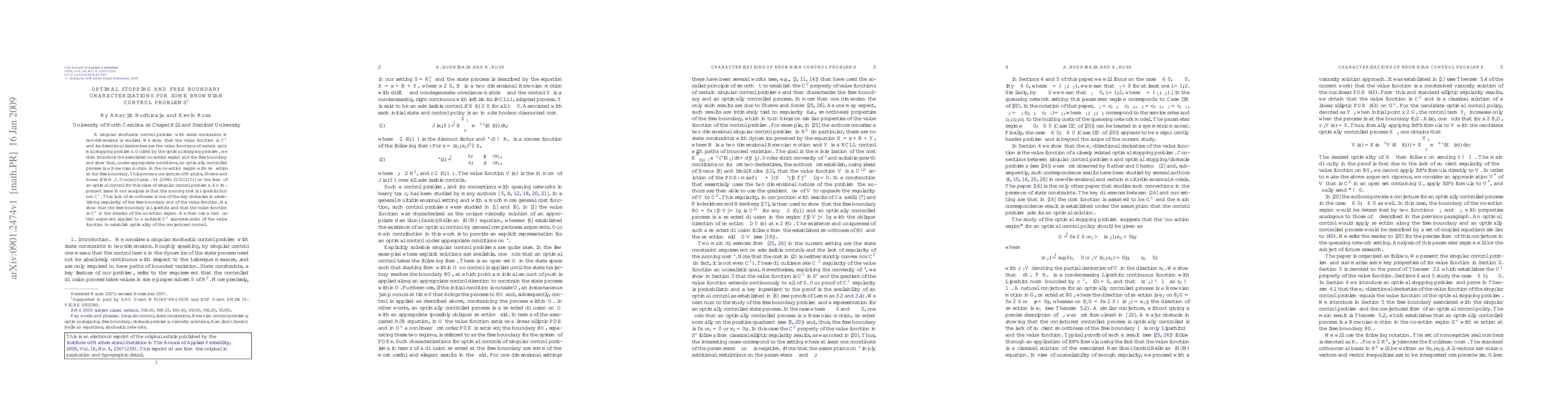 This paper studies a singular stochastic control problem with state constraints, proving that the value function is $C^1$ and its derivatives correspond to optimal stopping problems. The authors introduce a no-action region and free boundary, showing that under certain conditions, the optimally controlled process behaves as Brownian motion with reflection at the free boundary, thus verifying a conjecture on optimal control for this class of problems.